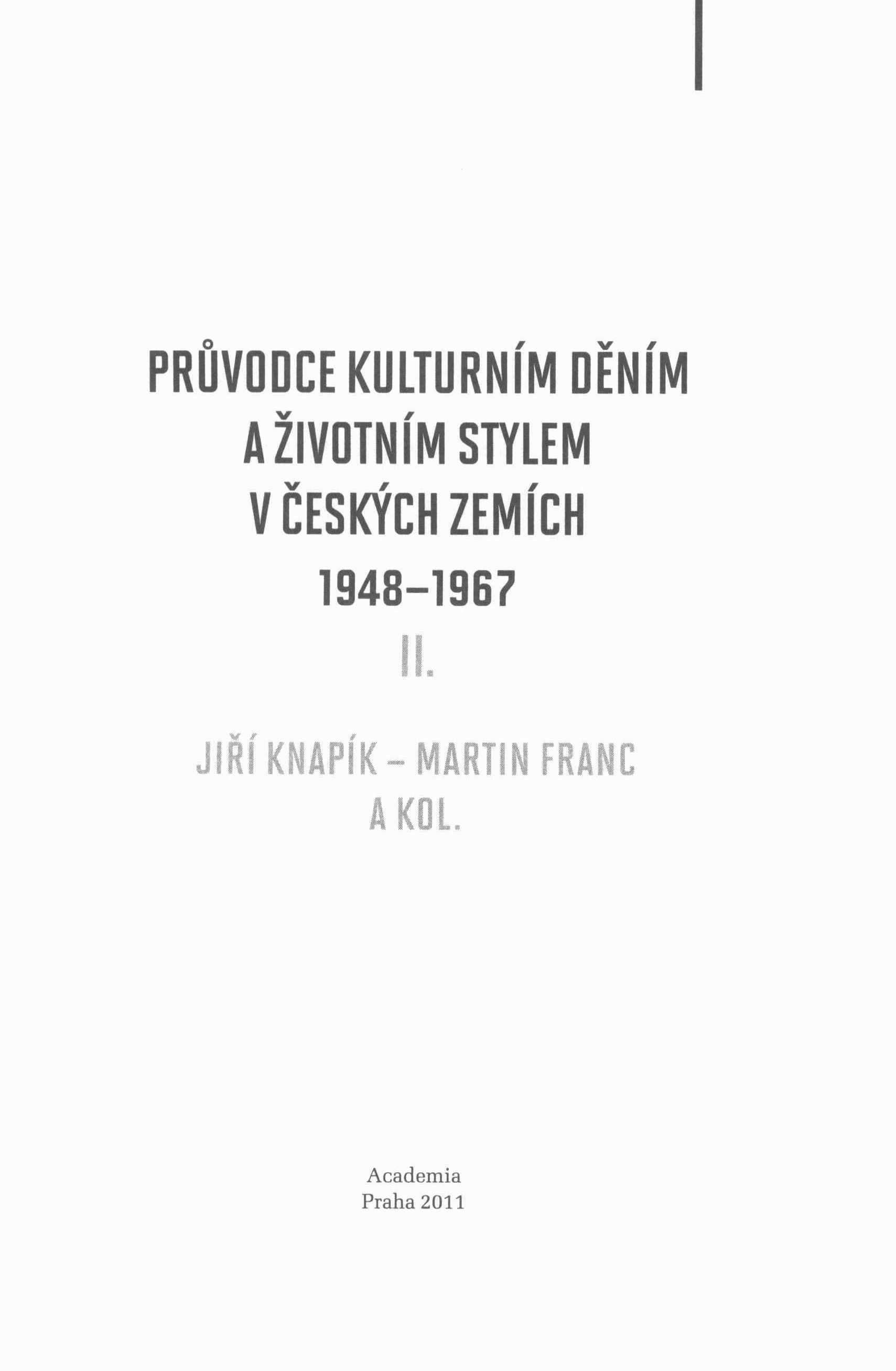 1. Title informationPrůvodce kulturním děním a životním stylem v českých zemích 1948-1967. II., [P-Ž] / Jiří Knapík, Martin Franc a kol. ; [[grafický návrh Michaela Blažejová]