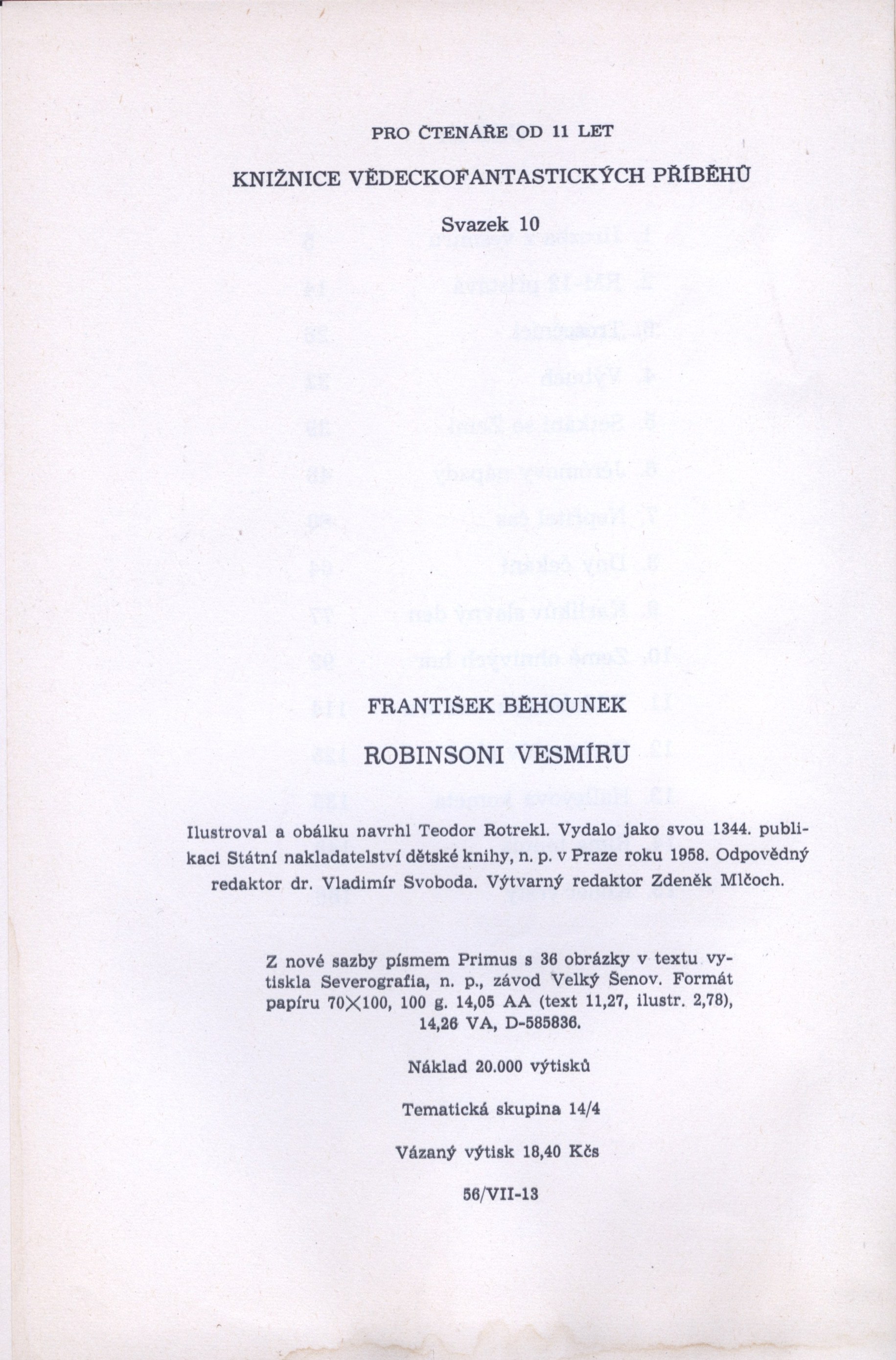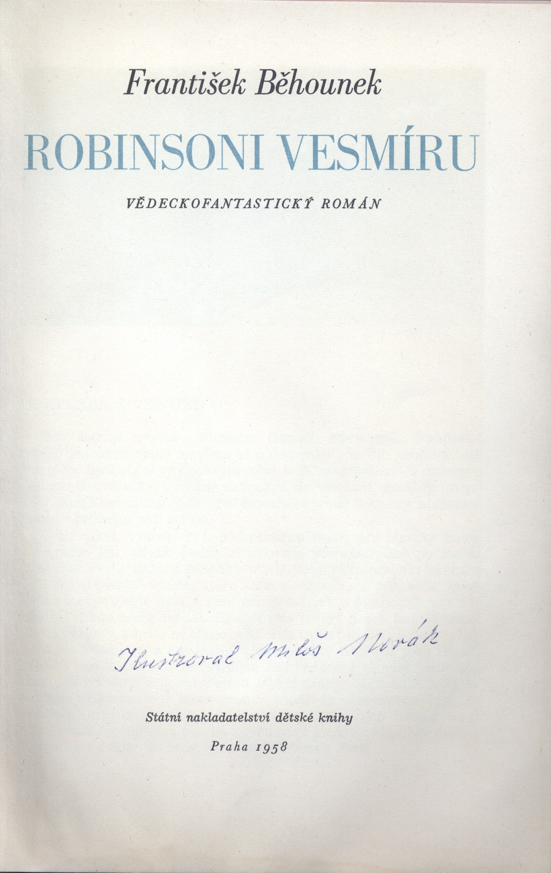 1. Title informationRobinsoni vesmíru : vědeckofantastický román / František Běhounek ; [ilustroval a obálku navrhl Teodor Rotrekl [sic!]