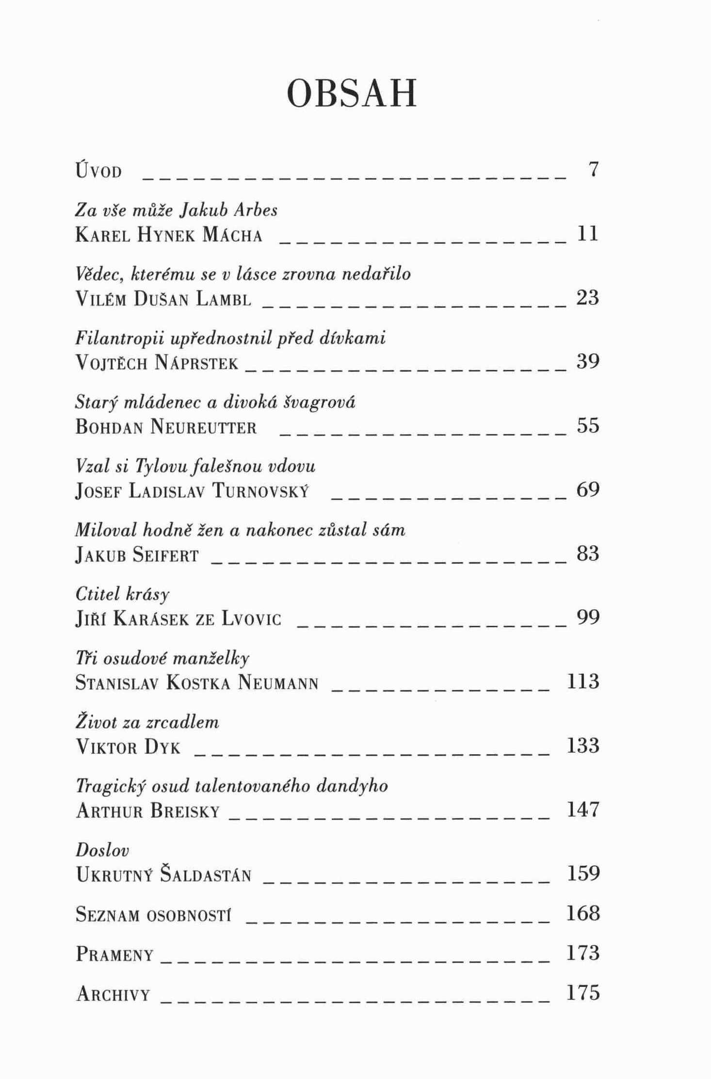 Keywords české osobnosti * čeští spisovatelé * partnerské vztahy * rodinné vztahy * Mácha K. H. * Lambl V. D. * Náprstek V. * Neureutter B. * Turnovský J. L. * Seifert J. * Karásek ze Lvovic J. * Neumann S. K. * Dyk V. * Breisky A. * stol. 19.-20. * biografické příběhy