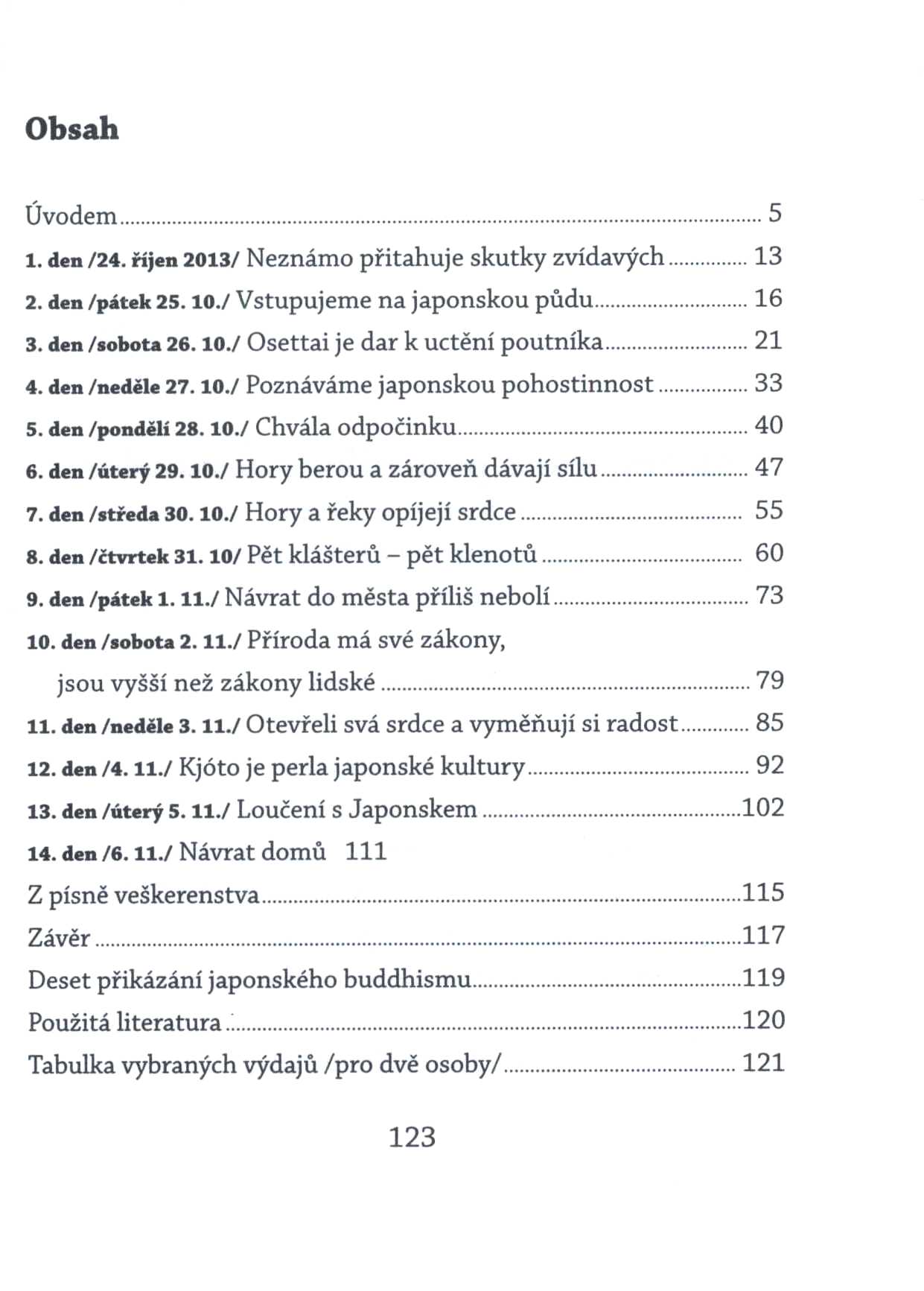 Title information Matka a syn poutníky v Japonsku : po buddhistických a šintoistických klášterech ostrova Šikoku / Alena Bímová ; fotografie Jan Bím ; kresby Jiří Bím ; grafická úprava Christina Dumalasová Personal name Bímová, Alena (Author) Další autoři Bím, Jan (Photographer) Bím, Jiří (Illustrator) Dumalasová, Christina, 1976- (Book designer) Corporation Zdeněk Susa (nakladatelství) (Publisher) Akcent tiskárna Vimperk (Printer) Publication Středokluky : Zdeněk Susa, 2018 Manufacture Vimperk : Akcent Scope 123 stran : ilustrace, portréty ; 16 cm ISBN 978-80-88084-18-1 (vázáno) Country Czech Republic Language Czech Note Vínová vazba s ilustrací a s bílým textem. - Patitul s černobílou ilustrací. - Frontispis. - Úvod. - Černobílé fotografie. - Texty. - Modlitba. - Závěr. - Deset přikázání japonského buddhismu. - Tabulka vybraných výdajů. - Mapa. - Obsah. - Kresba na zadní straně vazby.