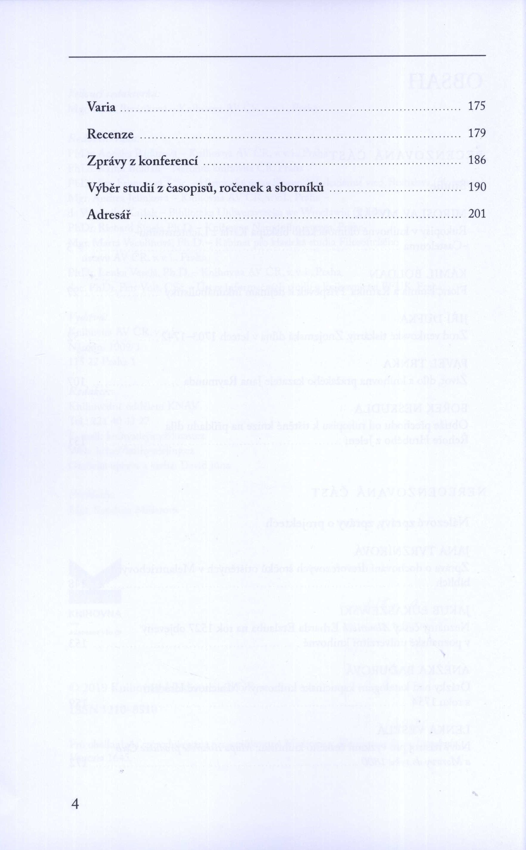 Title information Knihy a dějiny Další autoři Beránková, Hana (Publishing director) Corporation Akademie věd České republiky. Knihovna (Publisher) Roč., číslo Ročník 26, číslo 1-2, 2019 Publication Praha : Knihovna AV ČR, v. v. i., 2019 Scope 201 stran : fotografie, faksimile ; 25 cm ISSN 1210-8510 Country Czech Republic Language Czech Note Čb. i barevné faksimile a fotografie. - Anglická resumé