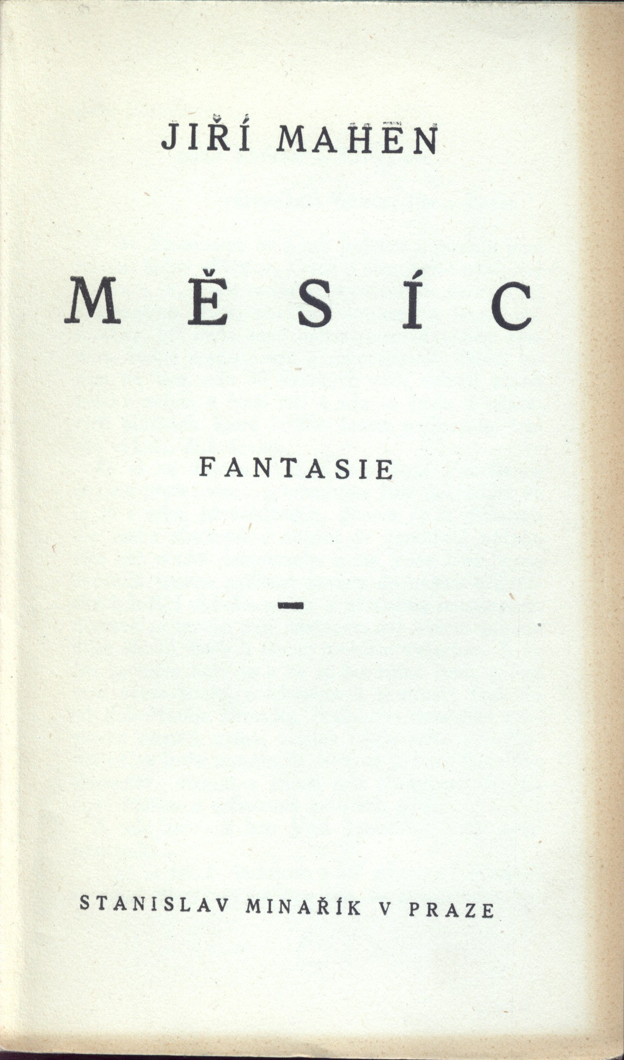 Title information Měsíc : fantasie / Jiří Mahen ; [s pěti dřevoryty Pravoslava Kotíka ; s obálkou V. H. Brunnera] Personal name Mahen, Jiří, 1882-1939 (Author) Další autoři Kotík, Pravoslav, 1889-1970 (Illustrator) Brunner, Vratislav Hugo, 1886-1928 (Bookjacket designer) Corporation Stanislav Minařík (nakladatelství) (Publisher) Edvard Leschinger (firma) (Printer) Další var.názvy Fantasie Publication V Praze Stanislav Minařík, 1920 Manufacture (E. Leschinger) Scope 87, [5] s. : il. ; 18,5 cm ISBN brož. Edition Knihy Země XIV. svazek