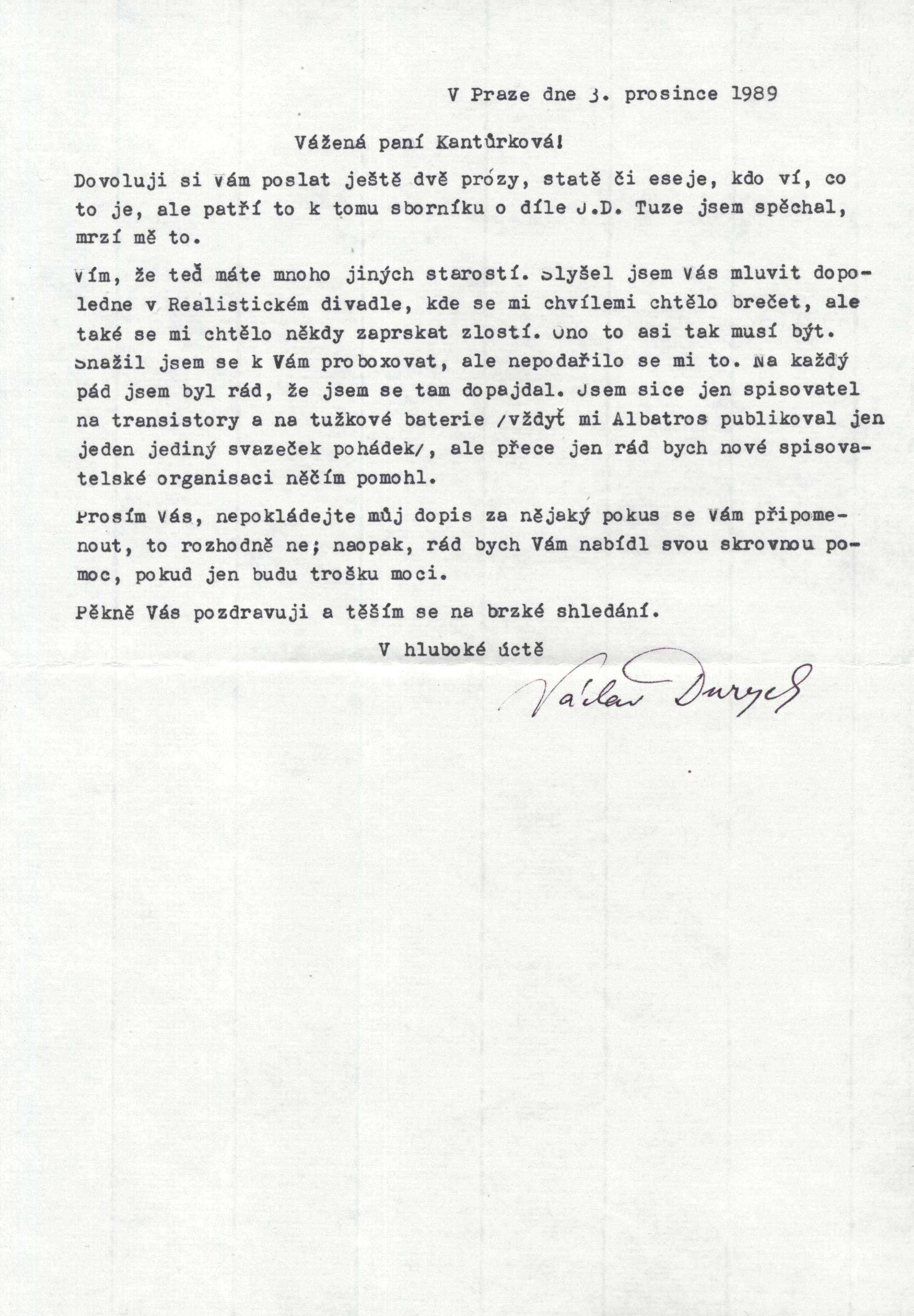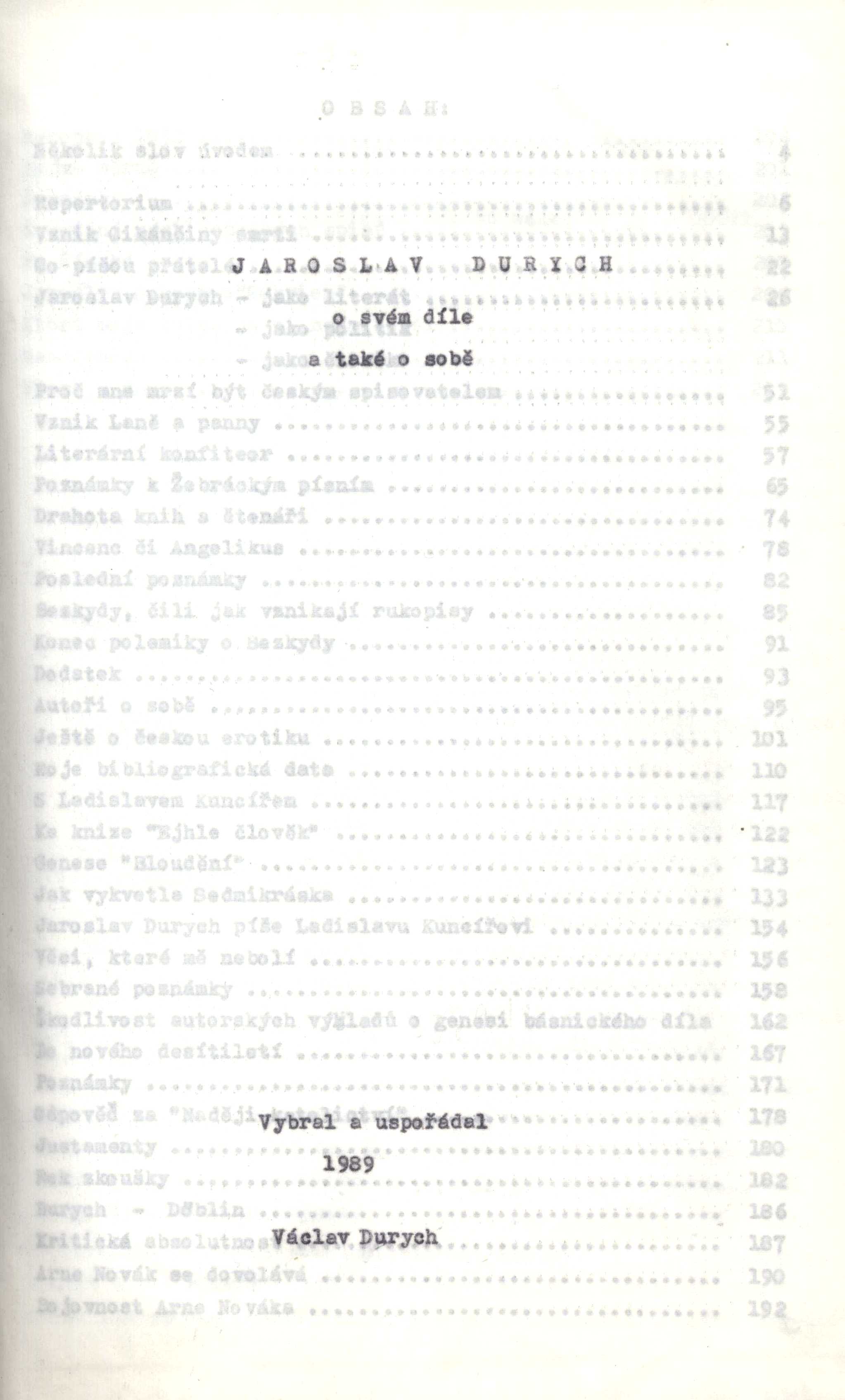 Jaroslav Durych o svém díle a také o sobě