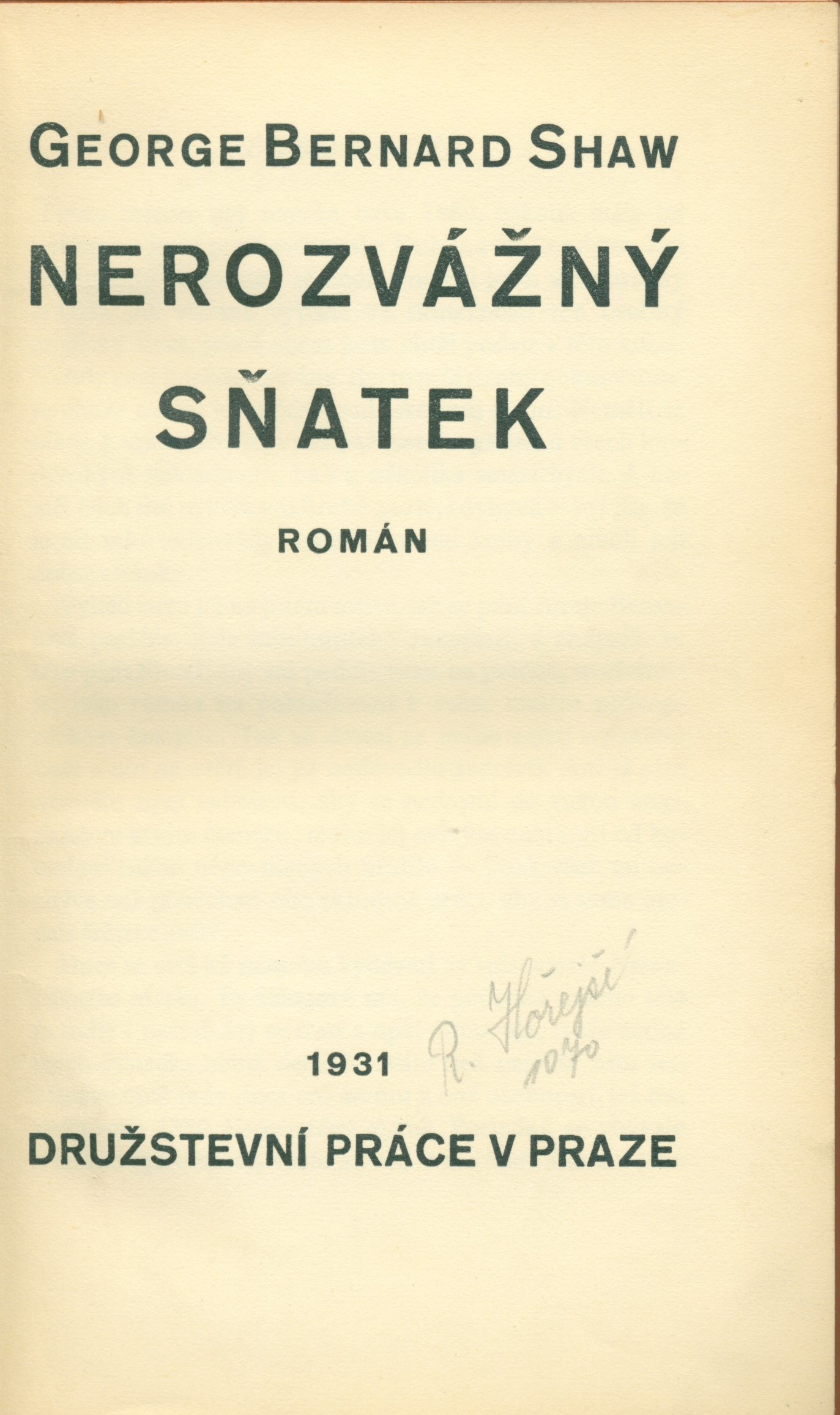 U sign. AHO (Archiv Hořejší) - na titulním listu (tužkou): "R. Hořejší. 1070".