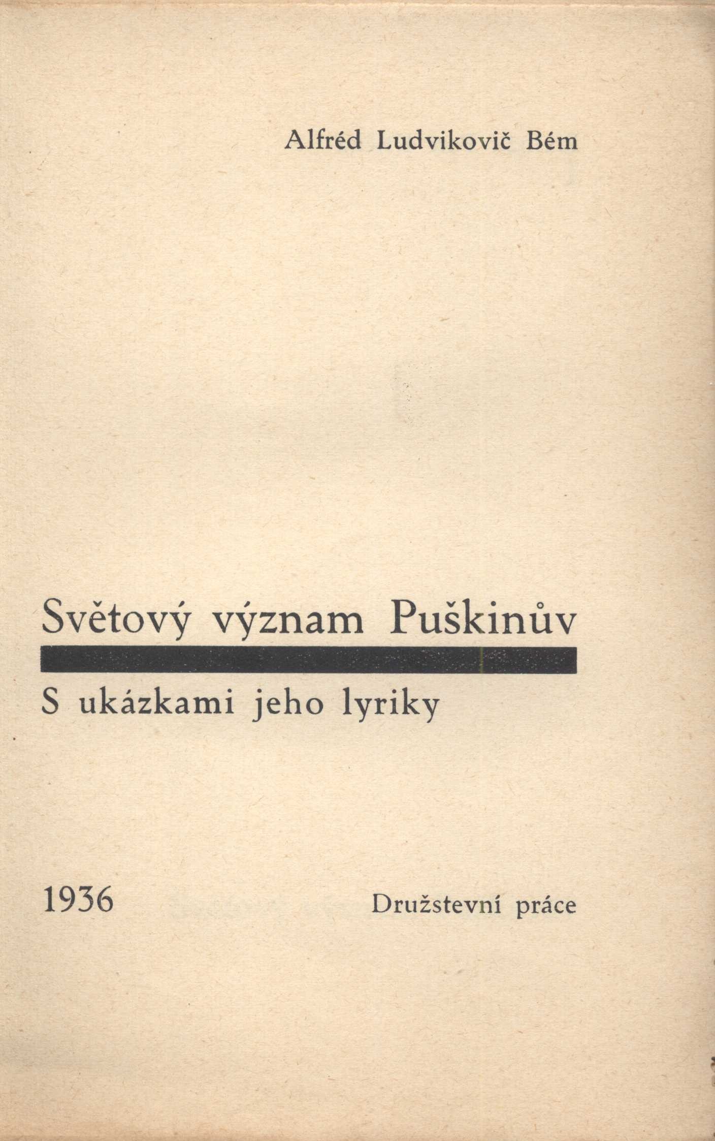 1. Title informationSvětový význam Puškinův : s ukázkami jeho lyriky / Alfréd Ludvikovič Bém ; přeložil Petr Křička