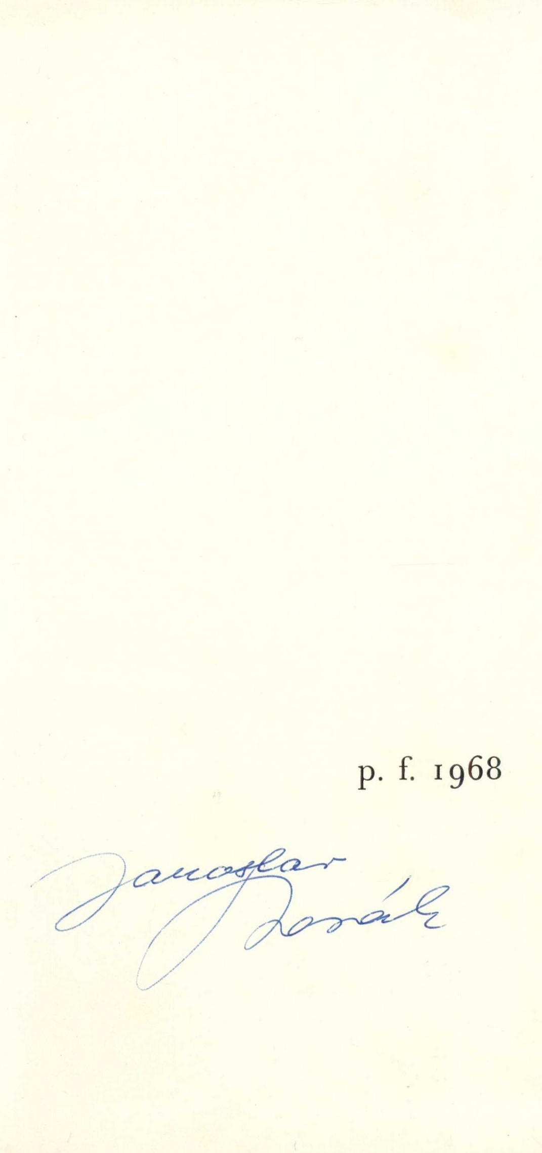 $7 pnp_us_auth*0063062 $a Tisk Brno (tiskárna) $4 prt T85 $x existuji fulltexy UUU $a Sign. Holman-Březina 112: Knihovna Petra Holmana. - Volně vloženo P.F. 1968 s vlastnoručním podpisem "Jaroslav Novák". - Průhledný ochranný přebal.