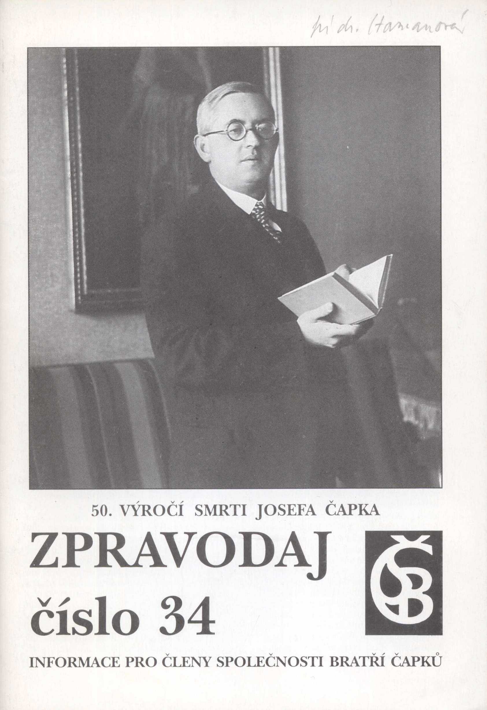Title information Zpravodaj SBČ : informace pro členy Společnosti bratří Čapků. 50. výročí smrti Josefa Čapka Další autoři Koháček, Petr, 1951-2025 (Editor) Opelík, Jiří, 1930-2024 (Editor) Štemberková, Marie, 1949- (Editor) Roč., číslo Číslo 34, 1995 Další var.názvy Zpravodaj Společnosti bratří Čapků Publication Praha : Společnost bratří Čapků, 1995 Scope 71 stran : ilustrace ; 21 cm ISSN 1805-7527 Country Czech Republic Language Czech Note Název z obálky. - Portrét na obálce. - Čb. ilustrace. - Vydáno pro vnitřní potřebu Společnosti bratří Čapků