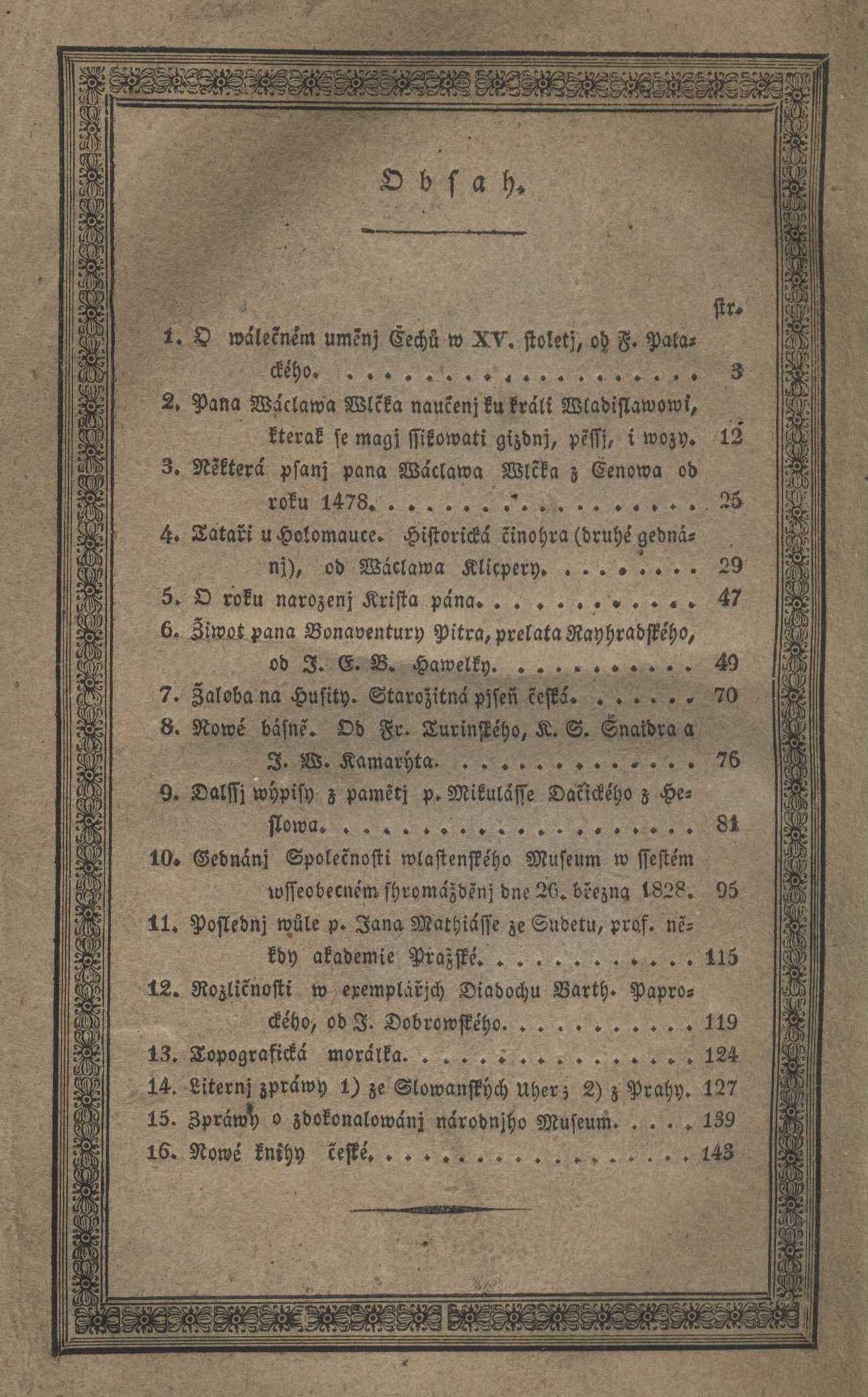 Binding inf. Obsahuje přív. 1.: Časopis společnosti wlastenského Museum w Čechách. Druhý ročnj běh. Swazek druhý Document kind monografie Keywords české země * dějiny českých zemí * česká historie * stol. 14.-16. * české kroniky * české rukopisy UDC 94(437.3) Bound in/Published with Časopis společnosti wlastenského Museum w Čechách.. Druhý ročnj běh. Swazek druhý Uživatelské pole PNP Knihovna Vojtěcha Martínka. - Podtrhávání tužkou v textu. - Převazba. Call number Track No. Location Info VMartínek 0146 1234/2013 Sbírka