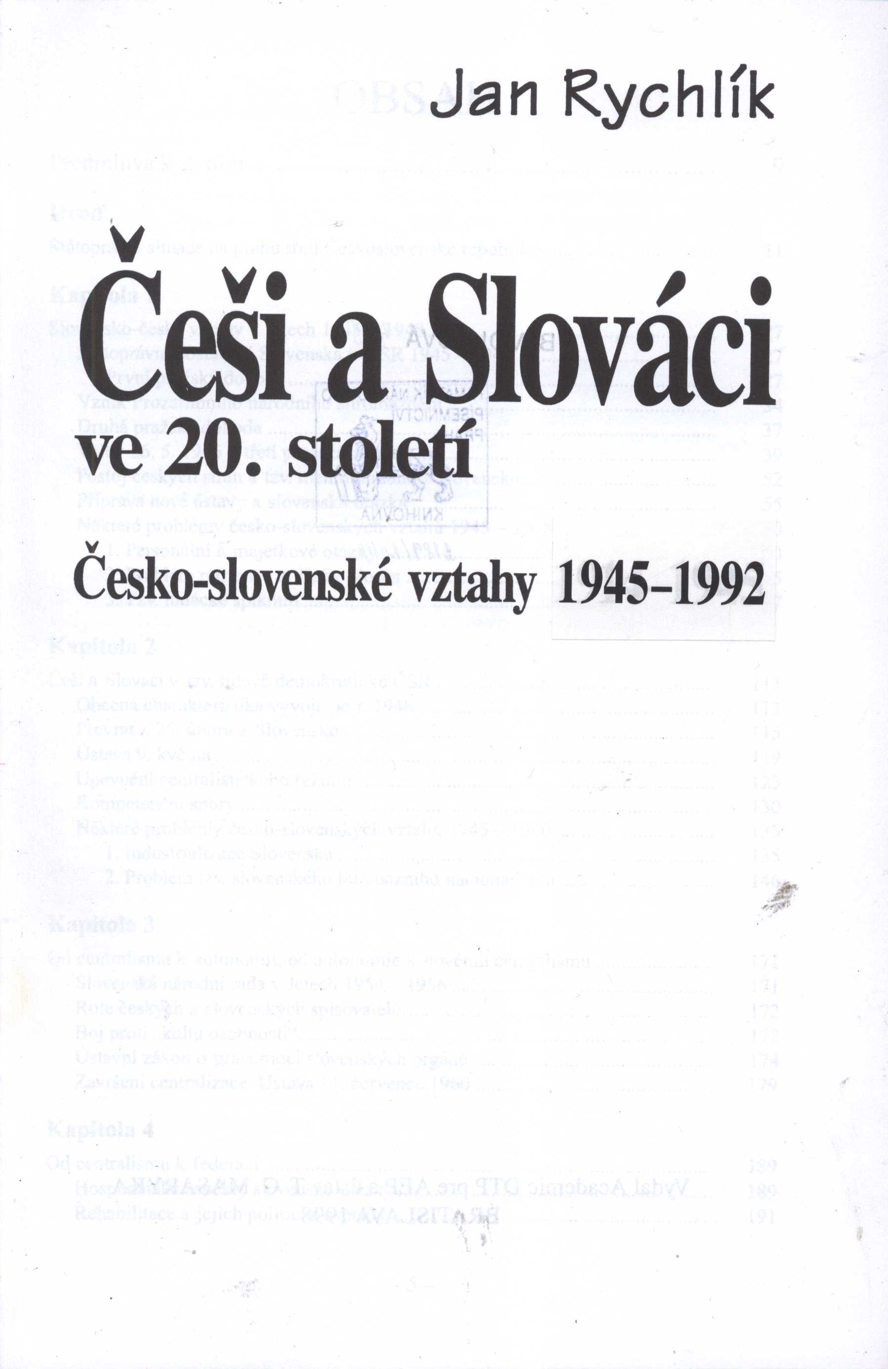 1. Title informationČeši a Slováci ve 20. století : česko-slovenské vztahy 1945-1992 / Jan Rychlík ; recenzovali Michal Barnovský ... [et al.]