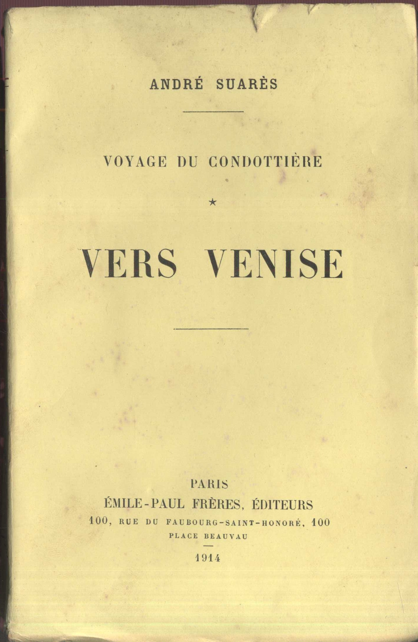 Title information Voyage du condotière. 1, Sur Venise / André Suarès Personal name Suarès, André, 1868-1948 (Author) Další autoři Éditions Émile-Paul Frères (Paris, Francie) (Publisher) Chaix (Paris) (Printer) Publication Paris : Émile-Paul Frères, éditeurs, 1917 Manufacture Paris : Imprimerie Chaix, 1917 Scope 310 stran Keywords francouzská literatura * cestopis * cestopisná literatura * cestopisná próza * Itálie * esejistické texty Copy cnt. 1, currently available 1 Document kind monografie Call number VHB 2615