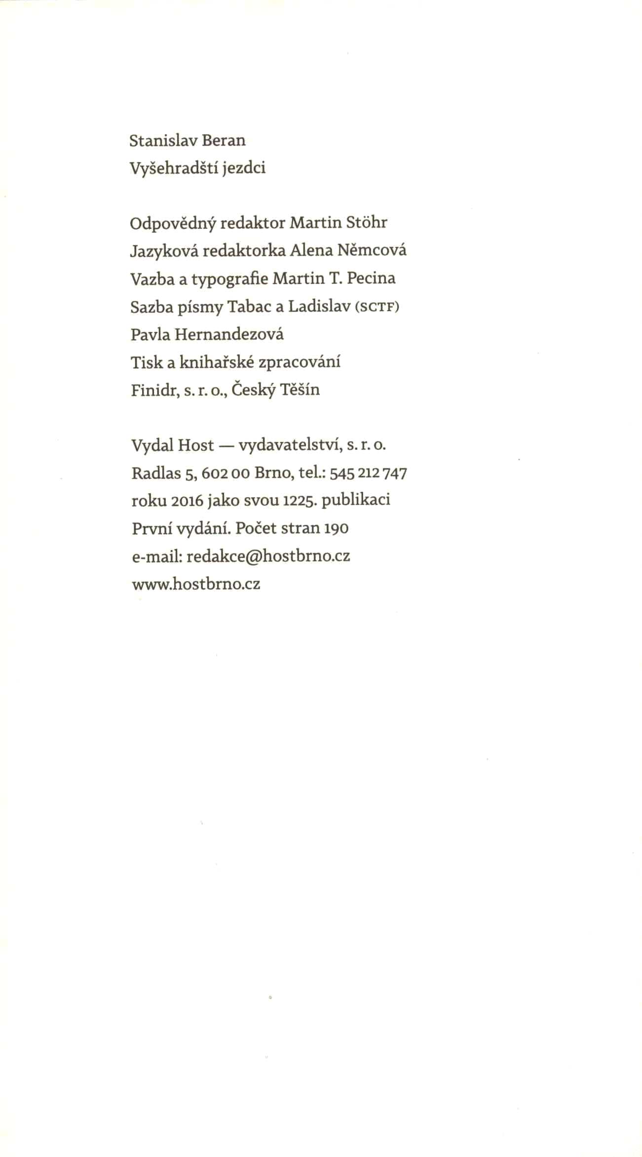 1. Title informationVyšehradští jezdci / Stanislav Beran ; vazba a typografie Martin T. Pecina