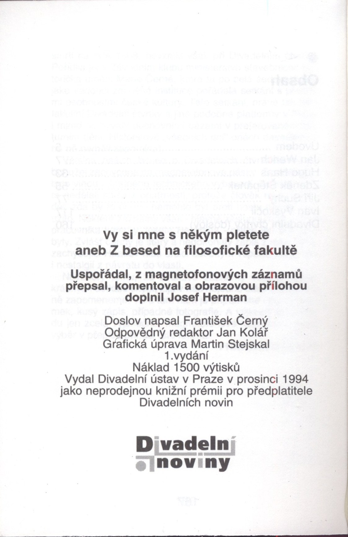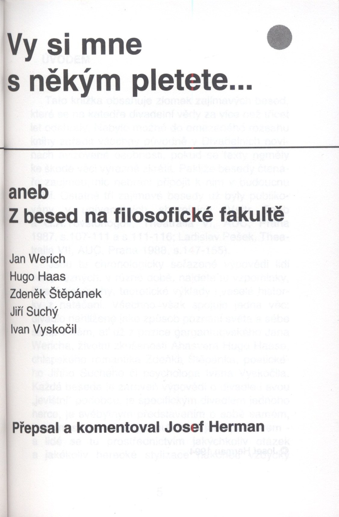 Vy si mne s někým pletete..., aneb, Z besed na filosofické fakultě