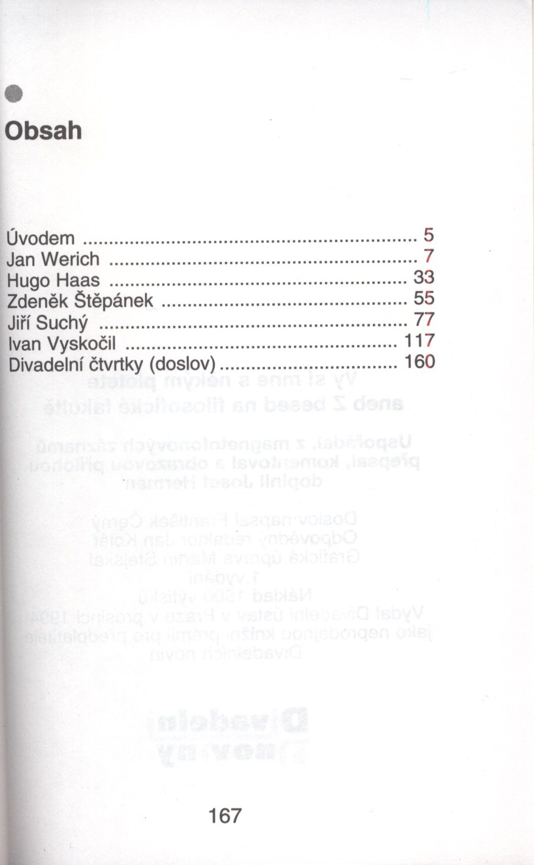 Title information Vy si mne s někým pletete..., aneb, Z besed na filosofické fakultě : Jan Werich, Hugo Haas, Zdeněk Štěpánek, Jiří Suchý, Ivan Vyskočil / přepsal a komentoval Josef Herman Personal name Herman, Josef, 1955- (Author) (Author of introduction) (Compiler) (Commentator) Další autoři Černý, František, 1926-2010 (Author of afterword, colophon, etc.) Stejskal, Martin, 1944- (Book designer) Corporation Divadelní ústav (Praha, Česko) (Publisher) Publication V Praze : Divadelní ústav, 1994 Scope 167 stran : ilustrace, fotografie, portréty ; 15 cm Personal subjects Haas, Hugo, 1901-1968 - herec a režisér * Suchý, Jiří, 1931 říjen 1.- - textař, zpěvák, autor pásem a her, divadelník, básník, spisovatel, skladatel, výtvarník a grafik * Vyskočil, Ivan, 1929-2023 - herec, dramatik, prozaik, VŠ pedagog * Werich, Jan, 1905-1980 - filmový a divadelní herec, dramatik a filmový scenárista, spisovatel * Štěpánek, Zdeněk, 1896-1968 - herec, prozaik Subject headings herci - Česko * čeští herci Keywords česká literatura * besedy * filozofická fakulta, UK Praha * divadlo * české osobnosti * výbor * dobové fotografie * Werich J. * Haas H. * Štěpánek Z. * Suchý J. * Vyskočil I. * stol. 20., 2. pol. Copy cnt. 1, currently available 1 Document kind monografie Call number VZinková 0017