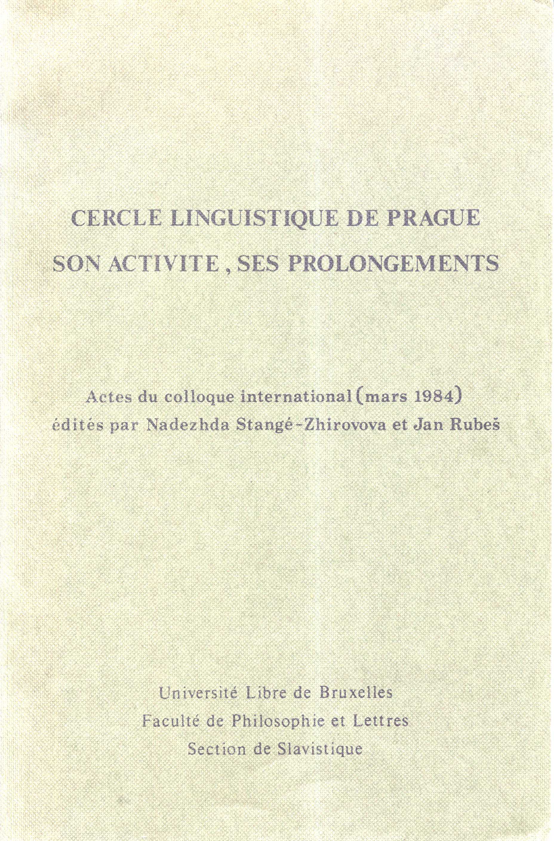 Stangé-Zhirovova, Naděžda. Rubeš, Jan, 1946-. Cercle linguistique de Prague, son activité, ses prologements (kolokvium) Brusel, Belgie)