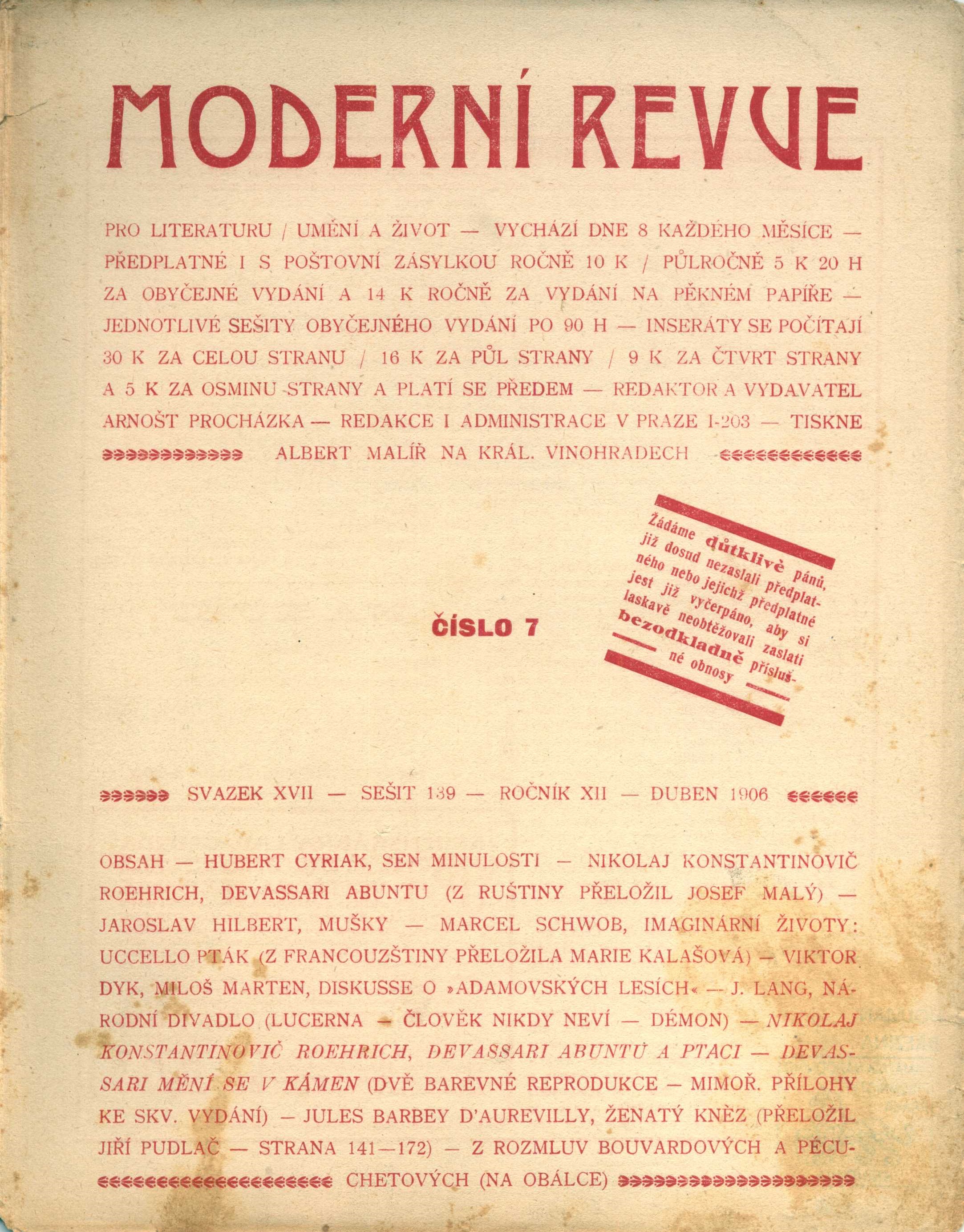 Názvové údaje Moderní revue : pro literaturu, umění a život Další autoři Procházka, Arnošt, 1869-1925 (Šéfredaktor, odpovědný redaktor) (Nakladatel, vydavatel) Malíř, Albert (Tiskař) Roč., číslo Ročník 12, svazek 17 a 18, číslo 1-13, 1905/1906 Nakladatel V Praze : Arnošt Procházka, 1905-1906 Výrobce Na Král. Vinohradech : Albert Malíř Rozsah 234 stran : ilustrace ; 24 cm + románová příloha (410 stran) Země vyd. Česko Jazyk dok. čeština Poznámky Béžové typograficky stejné obálky s písmem v barevných obměnách. - Čb. celostránkové ilustrace. - Na obálkách uvedeno rovněž průběžné číslování sešitů od začátku vydávání. - Průběžné stránkování. - Románová příloha Jules Barbey d´Aurevilly "Ženatý kněz" (410 str.). - Obsahem sv. 18 (číslo 10-11 a 12) byl pouze román na pokračování "Ženatý kněz", stránkování čísla 13 navazuje na stránkování čísla 9.