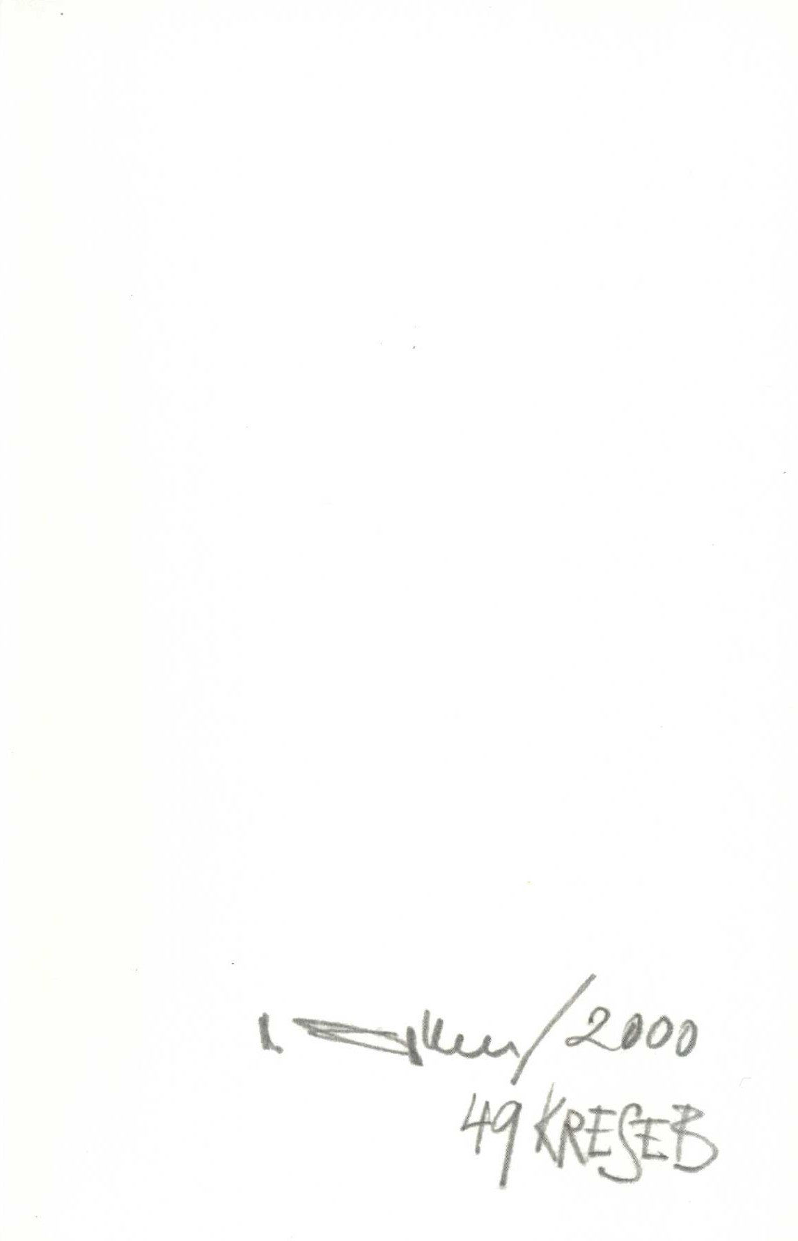 Note Šedé kartonové desky, černý text, nakladatelská značka; kroužková vazba. - Černobílá ilustrace na titulním listu. - Na jednotlivých listech černobílé ilustrace a báseň. - Faksimile podpisu autora / 2000, 49 kreseb. - Tiráž.