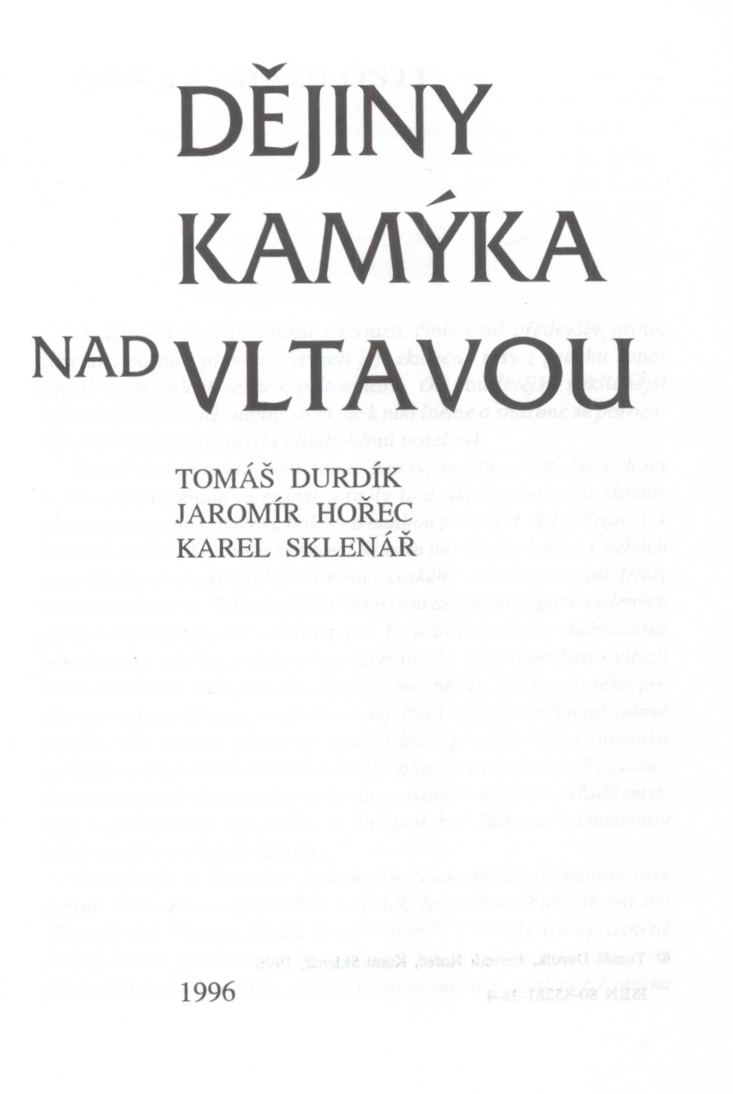 $a Dějiny Kamýka nad Vltavou / $c Tomáš Durdík, Jaromír Hořec, Karel Sklenář ; uspořádal Jaromír Hořec ; grafická úprava Milan Albich 264 -1