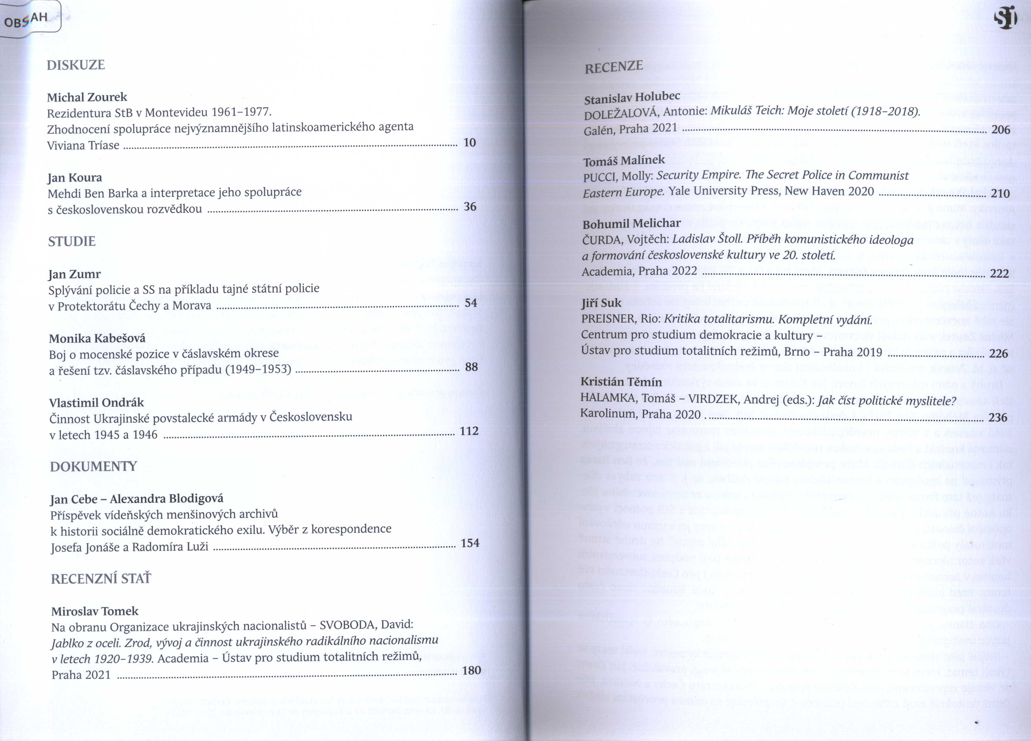 Poznámka o dalších původcích Šéfredaktoři Adéla Rádková, Ondřej Vojtěchovský Grafická úprava a sazba Jaroslav Ježek Document kind PERIODIKA - Přijatá čísla Periodicita 2x ročně Internal Bibliographies/Indexes Note Obsahuje bibliografické odkazy a bibliografi Parent Securitas imperii Keywords Československo * Protektorát Čechy a Morava * totalitní režimy * politický vývoj * zpravodajské služby * gestapo * banderovci * ukrajinská povstalecká armáda * studie * zprávy * recenze * sborník UDC (437) * 355.40 * 050 * 82.07 Call number Track No. Location Info LITc 0636 1886/2023 Fond