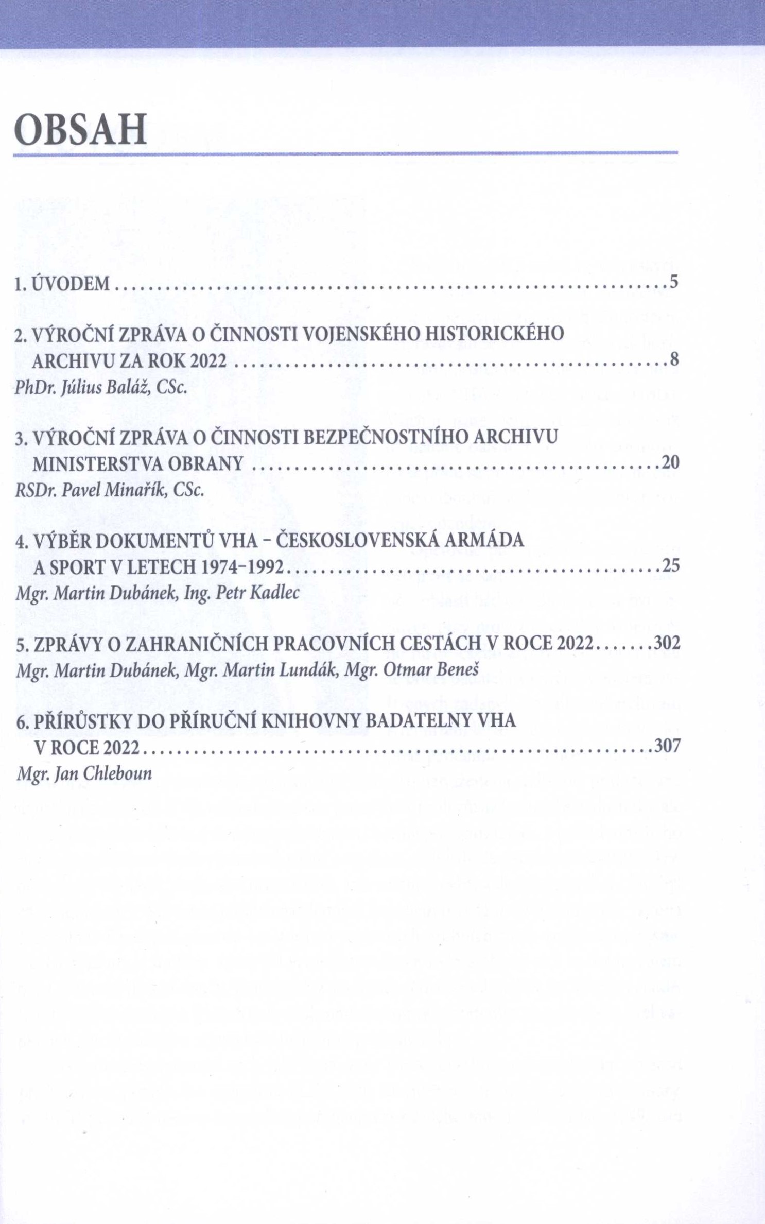 Title information Ročenka 2022 / Vojenský historický archiv Main entry-corp. Vojenský historický archiv (Author) Další autoři Baláž, Július, 1959- (Compiler) Dubánek, Martin, 1974- (Compiler) Kadlec, Petr, 1972- (Compiler) Zemanová, Adéla (Book designer) Corporation Vojenský geografický a hydrometeorologický úřad (Printer) Roč., číslo 2022 Publication Praha : Ministerstvo obrany České republiky - VHÚ, 2023 Manufacture Dobruška : Vojenský geografický a hydrometeorologický úřad Scope 312 stran : fotografie, portréty, faksimile ; 20,5 cm ISBN 978-80-7278-855-2 (brožováno) Country Czech Republic Language Czech Note Zdob. obálka. - Převážně barevné fotografie, portréty a faksimile dokumentů. - Neprodejné