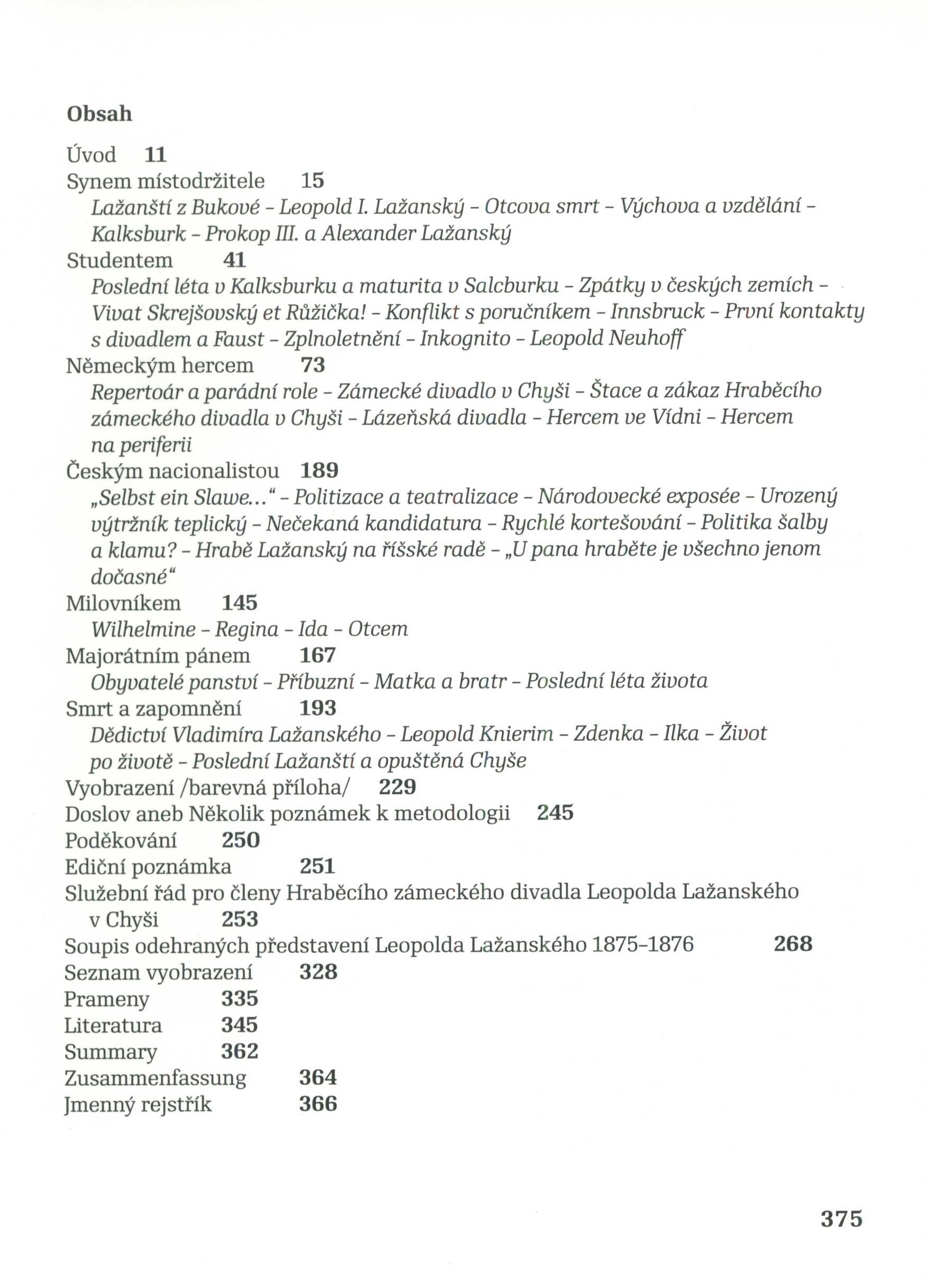 Title information Hrabě hraje divadlo : Leopold II. Lažanský z Bukové (1854-1891) / Berenika Zemanová ; anglický překlad resumé Irena Vodáková ; německý překlad resumé Silke Klein ; vnitřní grafická úprava edice Karl Stefan Igel Personal name Zemanová, Berenika, 1983- (Author) Další autoři Vodáková, Irena, 1969- (Translator) Klein, Silke, 1971- (Translator) Igel, Karl Stefan (Book designer) Corporation Institut umění - Divadelní ústav (Praha, Česko) (Publisher) Lidové noviny (nakladatelství) (Publisher) Edition statement Vydání první Publication Praha : Institut umění - Divadelní ústav : NLN, 2024 Scope 375 stran : ilustrace (některé barevné), portréty, faksimile ; 22 cm ISBN 978-80-7422-947-3 (NLN ; vázáno) 978-80-7008-485-4 (IDU ; vázáno) Edition Nota bene ; svazek 4.