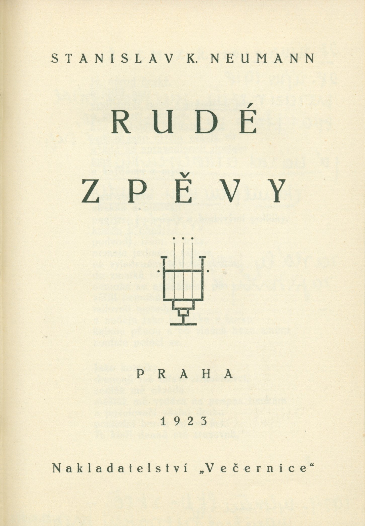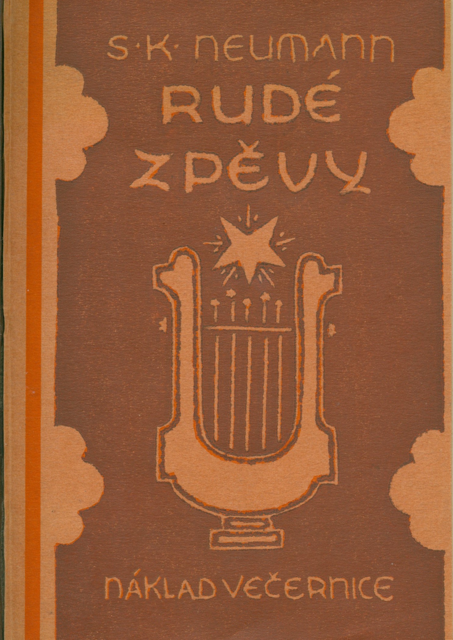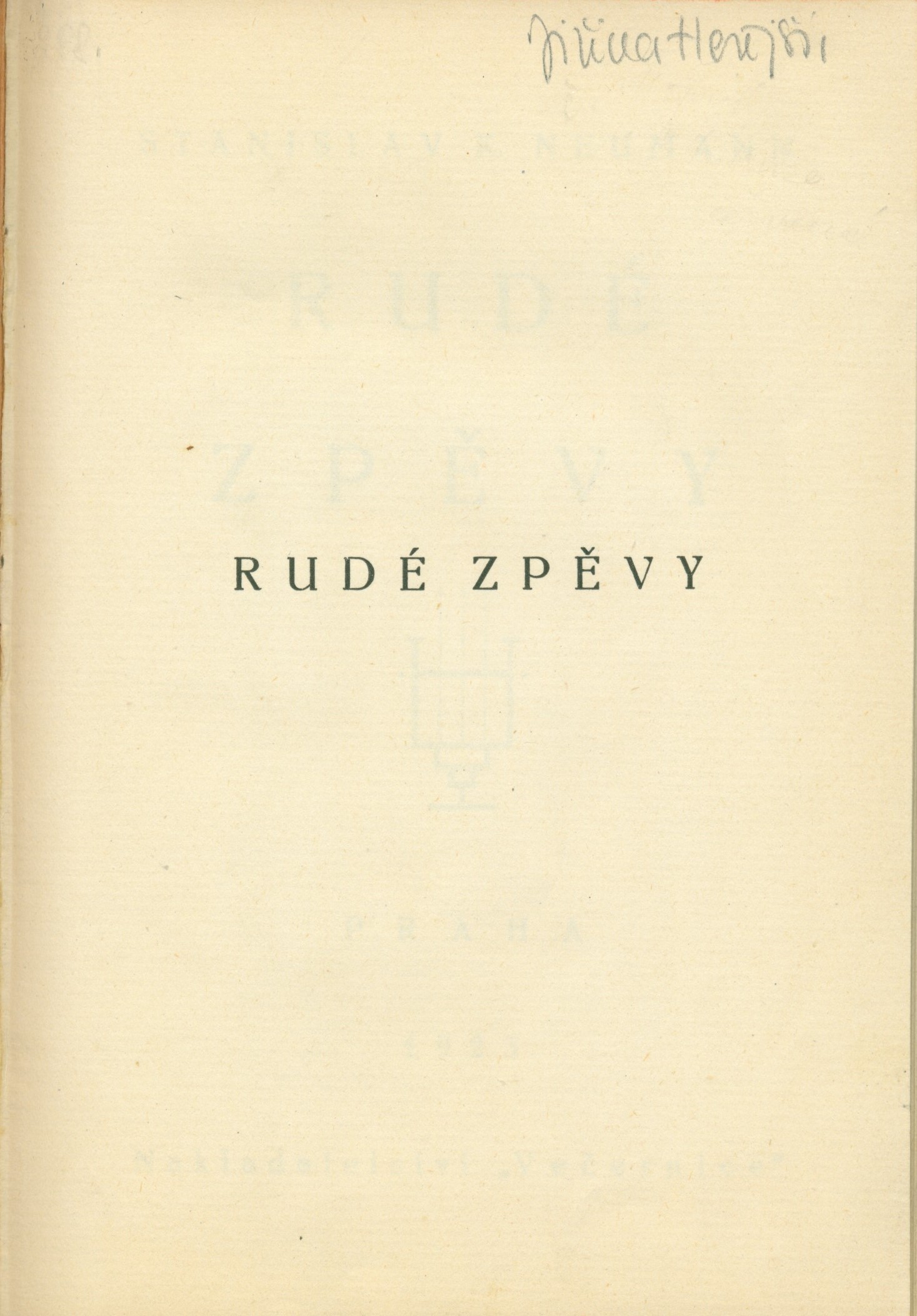 Title information Rudé zpěvy / Stanislav K. Neumann Personal name Neumann, Stanislav Kostka, 1875-1947 (Author) Další autoři Hořejší, Jiřina, 1932-2019 (Inscriber) Corporation nakladatelství "Večernice" V. Vortel a R. Rejman (Praha-Žižkov) (Publisher) Knihtiskárna Adolf Novotný (Praha) (Printer) Publication Praha : Nakladatelství "Večernice", 1923 Manufacture Žižkov : Ad. Novotný Scope 68 stran, 1 nečíslovaný list vevázané obálky ; 19 cm ISBN (Vázáno) Country Czech Republic Language Czech Document kind monografie Keywords česká literatura * poezie * básně * Neumann S. K. * r. 1923 UDC 821.162.3 * 82-1 Uživatelské pole PNP U sign. AHO (Archiv Hořejší) - červená polokožená vazba, barevný zdobený papírový polep, na hřbetu zlacená ražba textu, barevná horní ořízka. - Mramorované předsádkové papíry. - Vevázaná zdobená obálka. - Patitul. - Titulní list s vinětkou. - Obsah. - Tiráž. U sign. AHO (Archiv Hořejší) - vazba na hranách mírně odřená, uvnitř zachováno, jen četné poznámky tužkou a místy zatržení (rkp. Jiřiny Hořejší). U sign. AHO (Archiv Hořejší) - podpis tužkou u patitulu: "Jiřina Hořejší". Rozsah: 68, [4] s., [1] l. veváz. ob. Rozměr: 18,7 cm. Call number Track No. Location Info AHO 0436 1261/2022 Sbírka