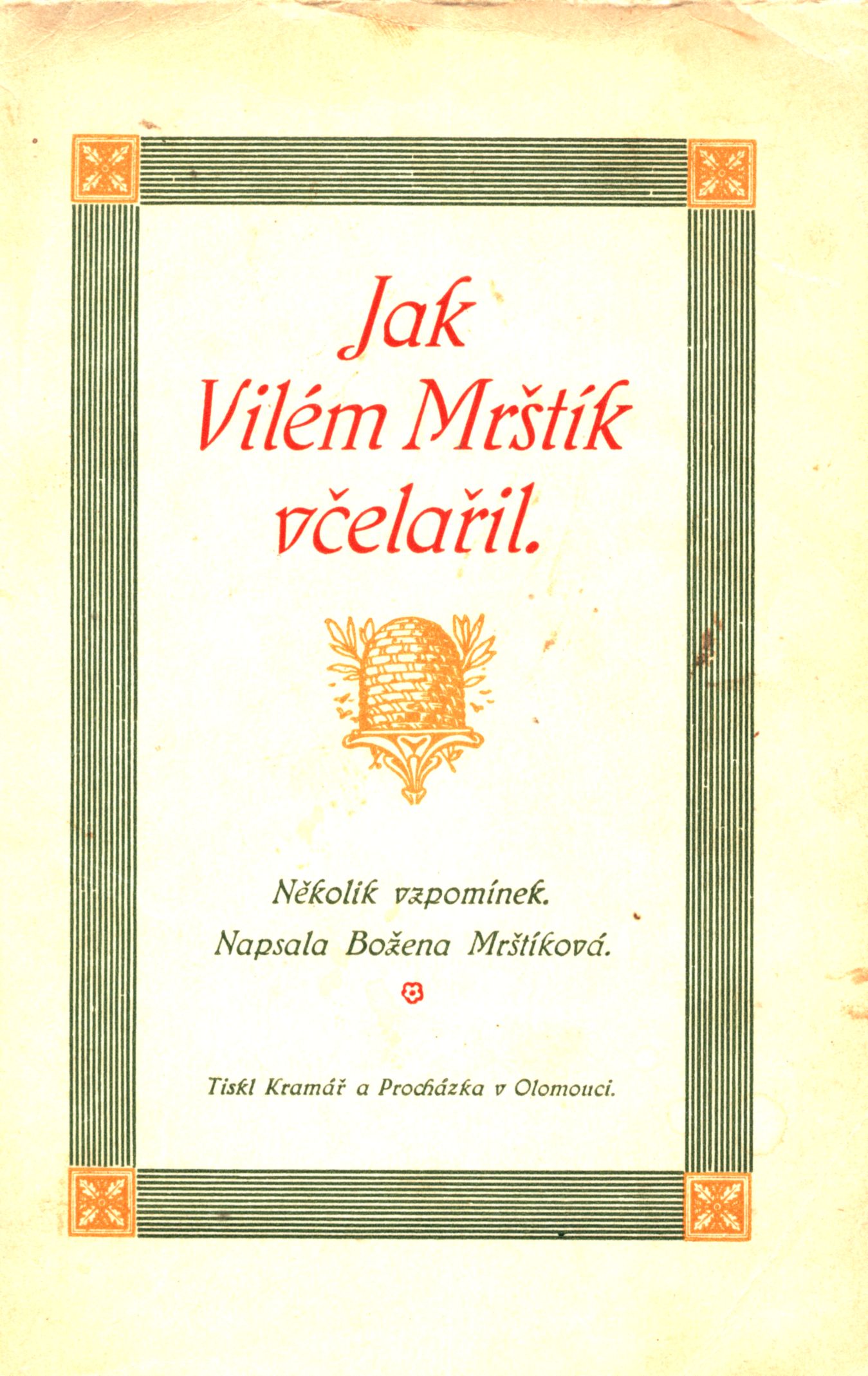 Title information Jak Vilém Mrštík včelařil : několik vzpomínek / napsala Božena Mrštíková Personal name Mrštíková, Božena, 1878-1958 (Author) (Publisher) Další autoři Kramář a Procházka (tiskárna) (Printer) Publication Olomouc : B. Mrštíková, [1923] Manufacture Kramář a Procházka s. s.r.o. Scope 71 stran ; 19 cm ISBN (Brožováno) Country Czech Republic Language Czech Note Barevná zdobená obálka. - Zdobený titulní list.