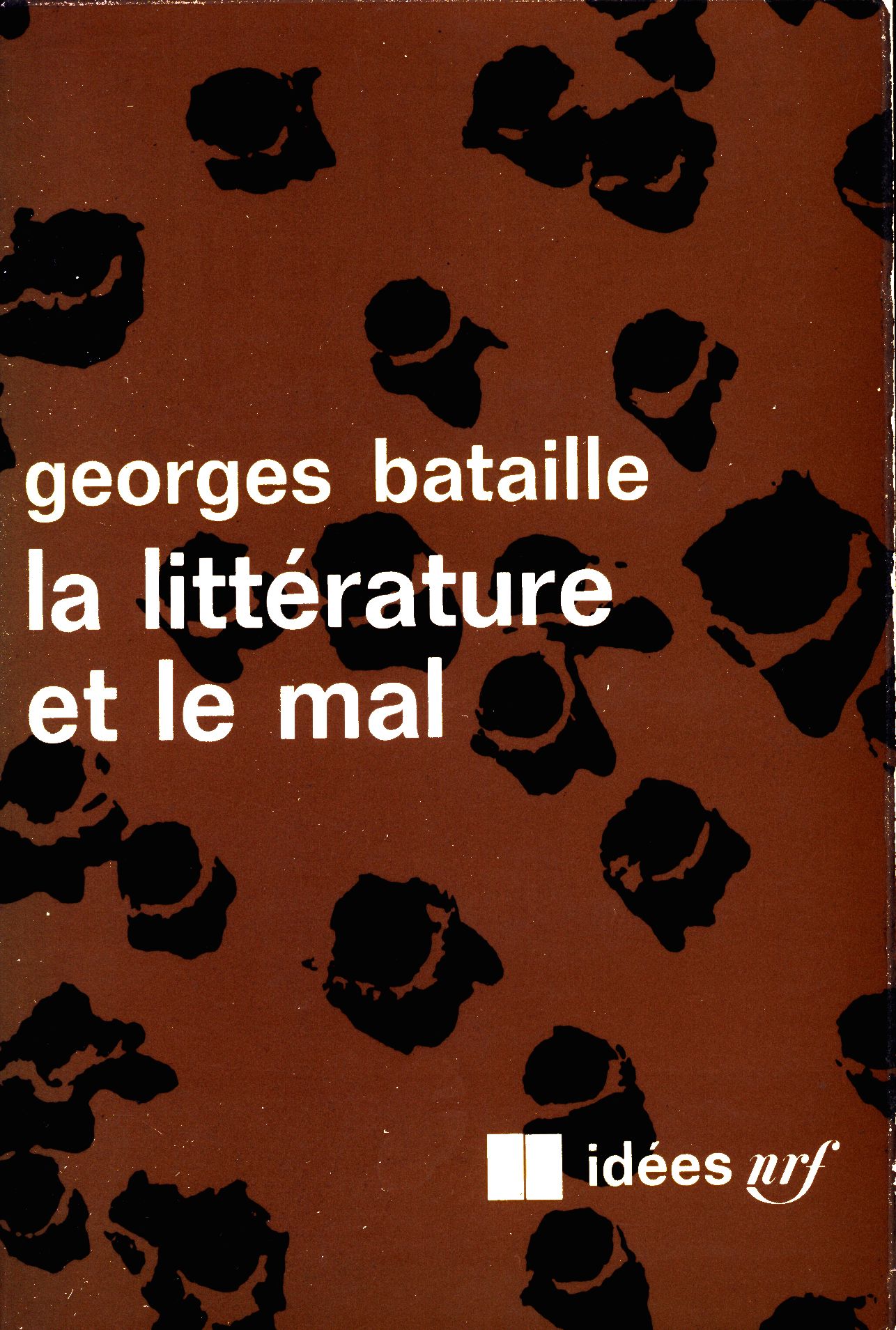 Title information La littérature et le mal : Emily Brontë - Baudelaire - Michelet - Blake - Sade - Proust - Kafka - Genet / Georges Bataille Personal name Bataille, Georges, 1897-1962 (Author) Další autoři Cohen, H. (Photographer) Corporation Gallimard (firma) (Publisher) Bussière (firma) (Printer) Publication Paris : Gallimard, 1967 Manufacture Saint-Amand : Imprimerie Bussière Scope 247 stran ; 17 cm ISBN (brožováno) Country France Language French Note Barevná zdobená obálka. - Titulní list s nakladatelskou značkou. - Obsah. - Na zadní straně obálky anotace.