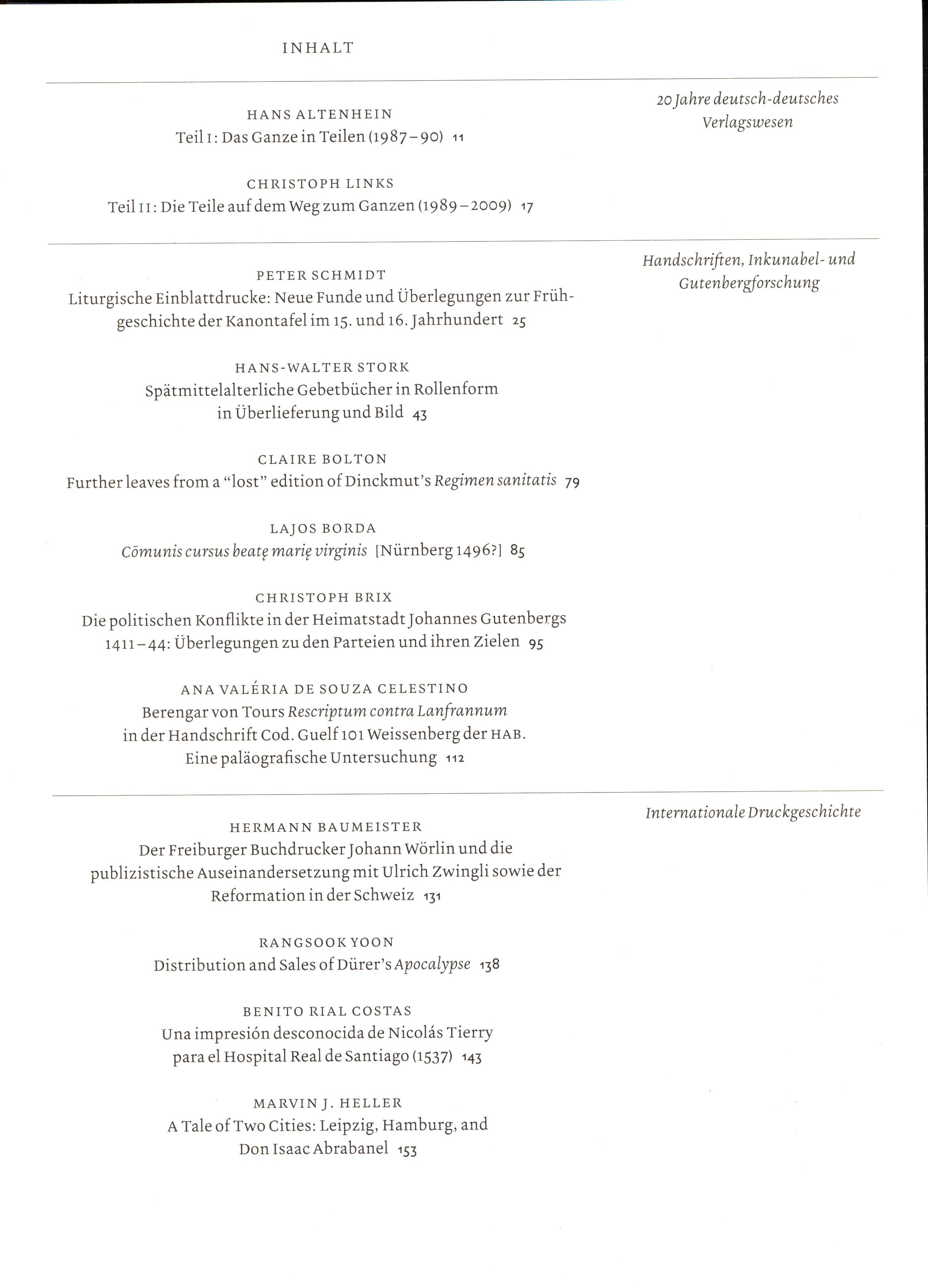 Title information Gutenberg-Jahrbuch 2010. 85. Jahrgang / im Auftrag der Gutenberg-Gesellschaft herausgegeben von Stephan Füssel Další autoři Füssel, Stephan, 1952- (Editor) (Author of introduction) Corporation Gutenberg-Gesellschaft (Publisher) Otto Harrassowitz (nakladatelství) (Publisher) Memminger MedienCentrum Druckerei und Verlags-AG (Printer) Publication Wiesbaden : Harrassowitz Verlag, 2010 Manufacture Memmingen : Memminger Medien-Centrum AG Scope 274 stran : ilustrace (černobílé), faksimile ; 28 cm; Keywords knihověda * dějiny knižní kultury * knihtisk * knihtiskaři * historické knihovní fondy * stol. 13.-18. * ročenky * studie Copy cnt. 1, currently available 1 Document kind monografie Call number MetC 0384