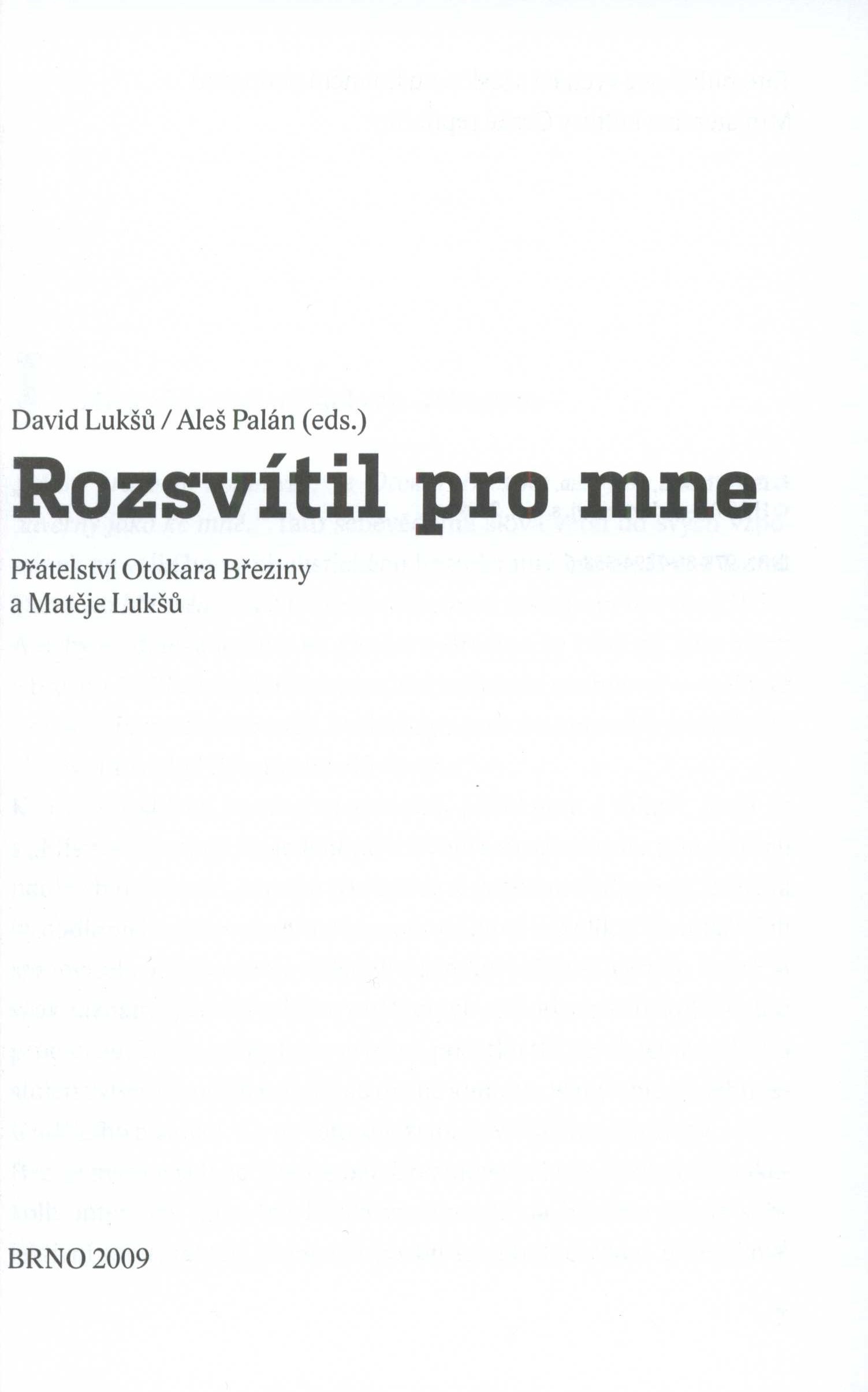 Title information Rozsvítil pro mne : přátelství Otokara Březiny a Matěje Lukšů / David Lukšů, Aleš Palán (eds.) ; obálka a grafická úprava Boris Mysliveček Personal name Březina, Otokar, 1868-1929 (Author) (Correspondent) Další autoři Lukšů, Matěj, 1868-1931 (Author) (Correspondent) Lukšů, David, 1979- (Editor) Palán, Aleš, 1965- (Editor) Mysliveček, Boris, 1948- (Bookjacket designer) (Book designer) Corporation Host (nakladatelství) (Publisher) Tiskárna Reprocentrum (Printer) Publication Brno : Host, 2009 Manufacture Blansko : Reprocentrum Scope 180 stran : ilustrace, portréty, faksimile ; 21 cm Personal subjects Březina, Otokar, 1868-1929 - učitel, básník, esejista, prozaik a myslitel * Lukšů, Matěj, 1868-1931 - pedagog, esejista, editor díla Otokara Březiny Keywords čeští básníci * čeští pedagogové * přátelé a spolupracovníci * literární život * Česko * stol. 19.-20. * deníky * vzpomínky * komentované vydání Copy cnt. 1, currently available 1 Document kind monografie Call number Holman-Březina 0461