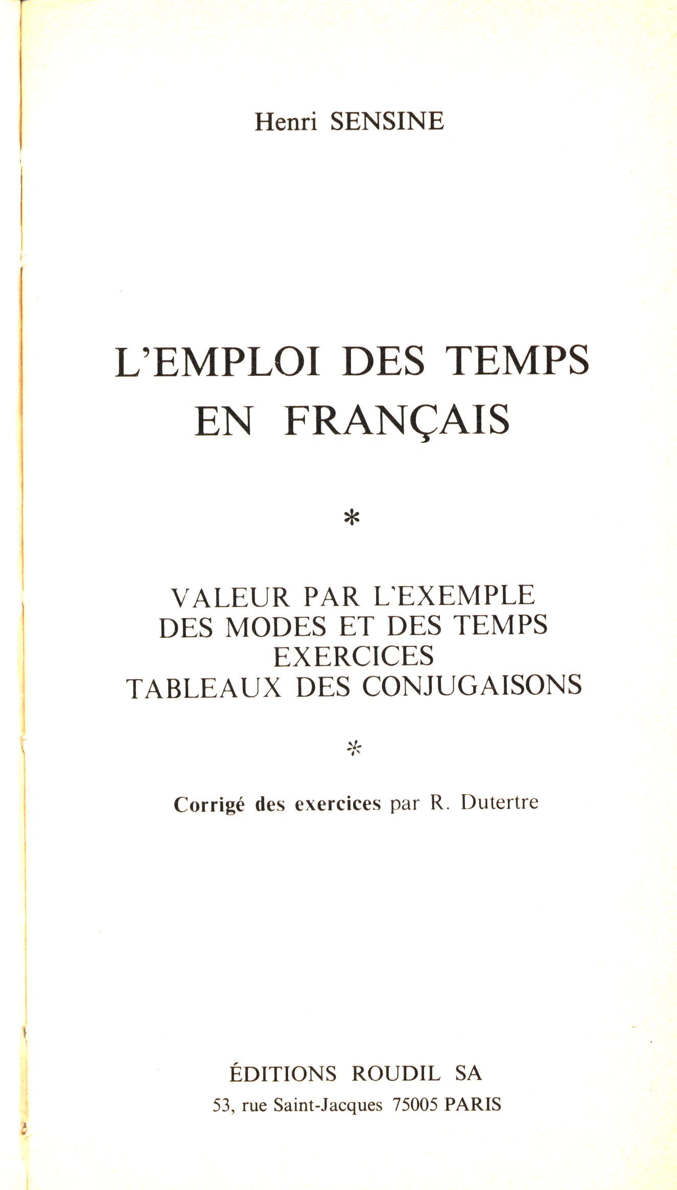 L'emploi des temps en francais (Éditions Roudil SA)Country France Language French Note Zdobená obálka. - Na frontispisu soupis děl z edice. - Poznámky. - Obsah.