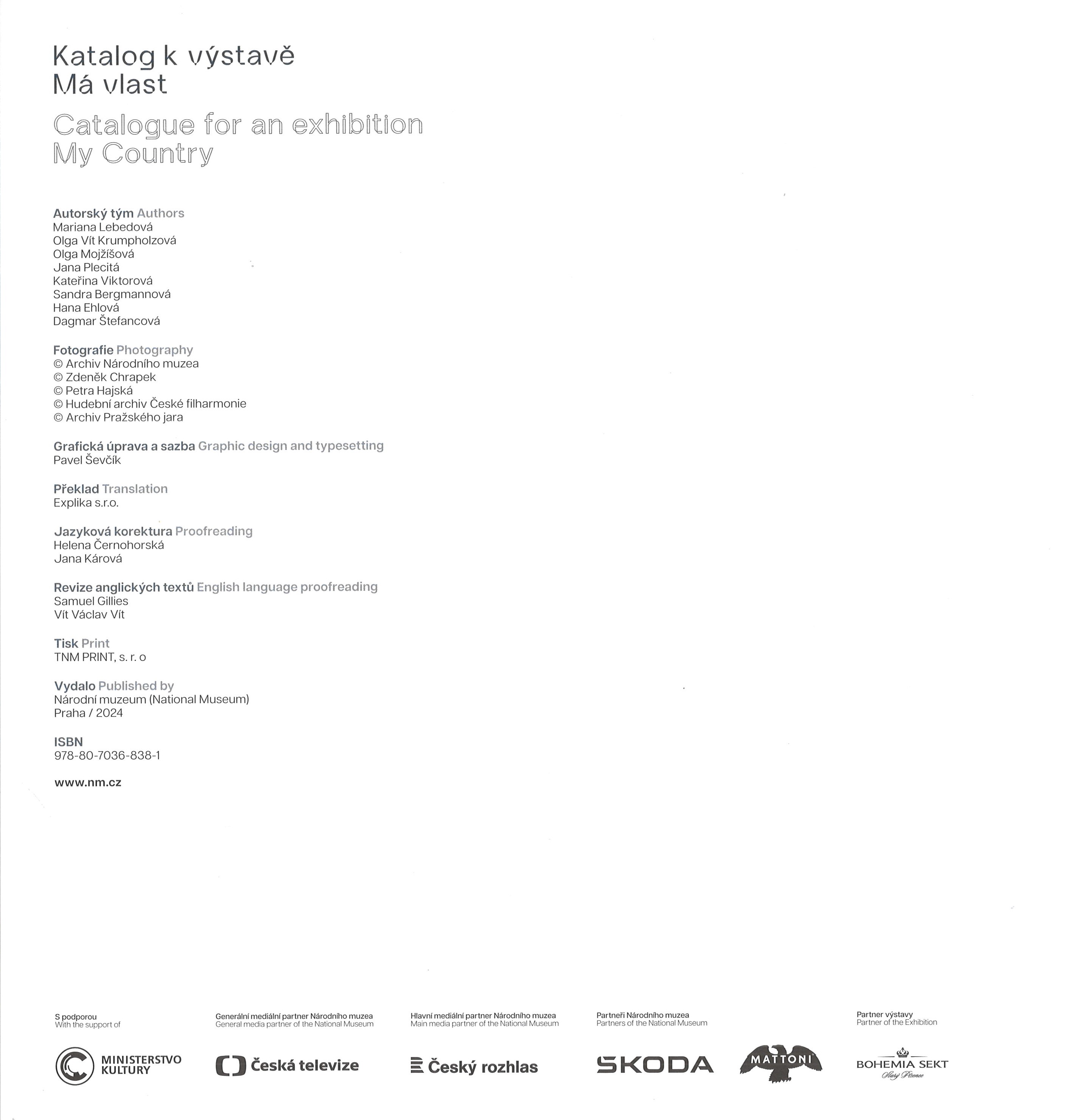 Title information Bedřich Smetana : Má vlast = Bedřich Smetana : My country / editor Olga Vít Krumpholzová, Mariana Lebedová ; autoři textů Olga Mojžíšová, Kateřina Viktorová Personal name Krumpholzová, Olga, 1981- (Editor) Další autoři Lebedová, Mariana, 1975- (Editor) Mojžíšová, Olga, 1955- (Author) Viktorová, Kateřina (Author) Corporation Národní muzeum (Praha, Česko) (Publisher) TNM PRINT s. r. o. (tiskárna) (Printer) Publication Praha : Národní muzeum, 2024 Manufacture TNM PRINT s. r. o. Scope 117 stran : ilustrace (převážně barevné), portréty, noty, faksimile ; 26 cm ISBN 978-80-7036-838-1 (brožováno) Country Czech Republic Language Czech Note Tónovaná zelená obálka s portrétem B. Smetany. - Barevný titulní list. - Úvod. - Barevné ilustrace, fotografie. - Faksimile partitur. - Rozměr 26 x 25 cm