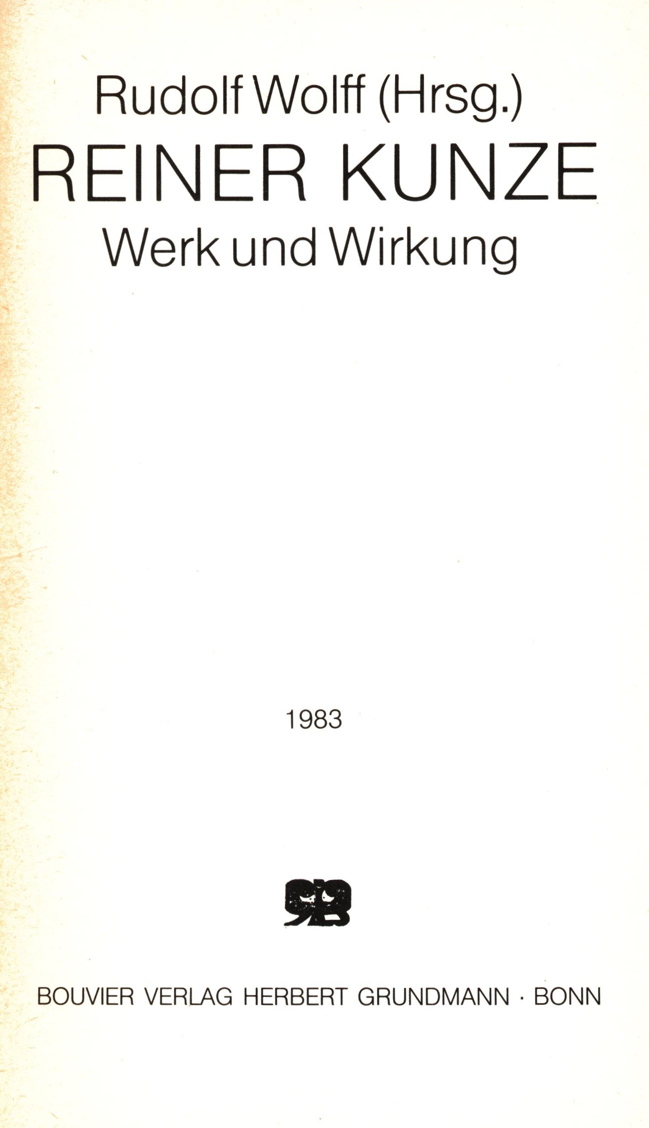 Sammlung Profile (Bouvier Verlag Herbert Grundmann)Country Germany Language German Note Zdobená obálka. - Na přední záložce biografická poznámka o Reinerovi Kunzovi. - Na zadní záložce upoutávka na knihu a biografická poznámka o editorovi