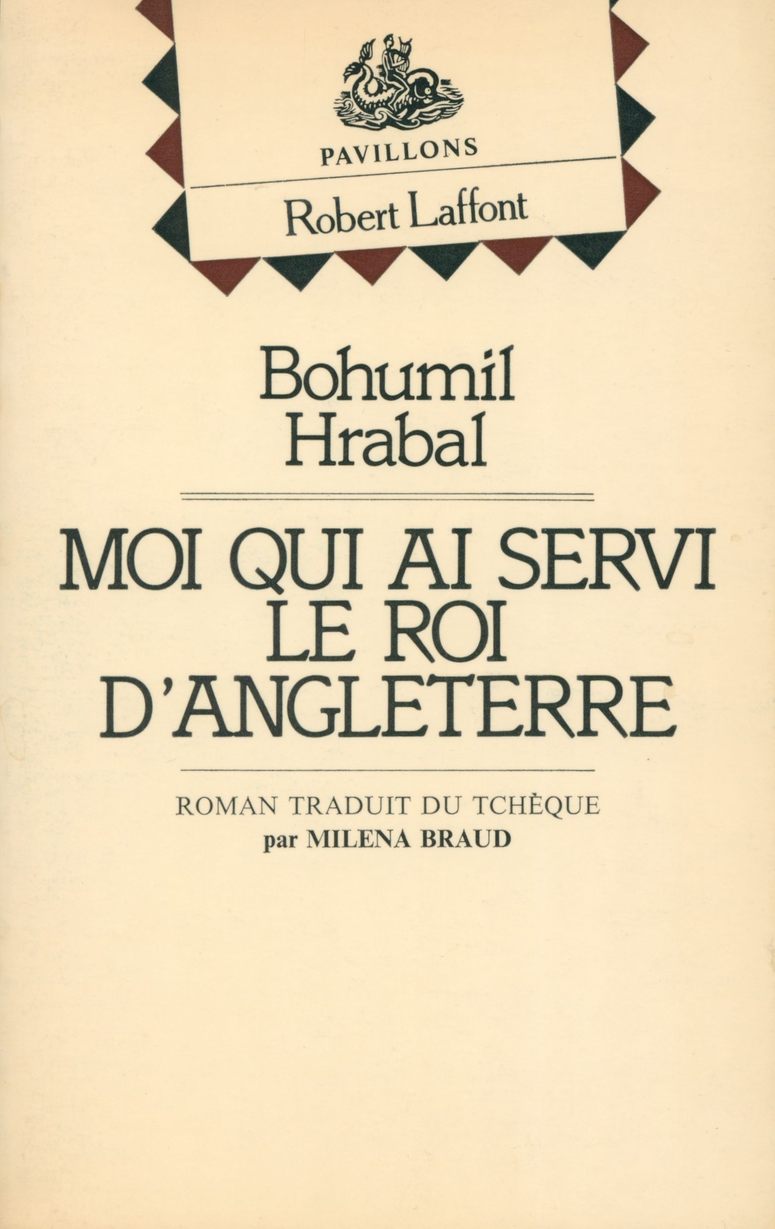 Title information Moi qui ai servi le roi d'Angleterre : roman / Bohumil Hrabal ; traduit du tcheque par Milena Braud Personal name Hrabal, Bohumil, 1914-1997 (Author) Další autoři Braud, Milena, 1926-2020 (Translator) Corporation Èditions Robert Laffont (nakladatelství) (Publisher) Publication Paris : Èditions Robert Laffont, 1981 Scope 198 stran ; 21 cm ISBN 2-221-00758-1 (brožováno) Edition Pavillons
