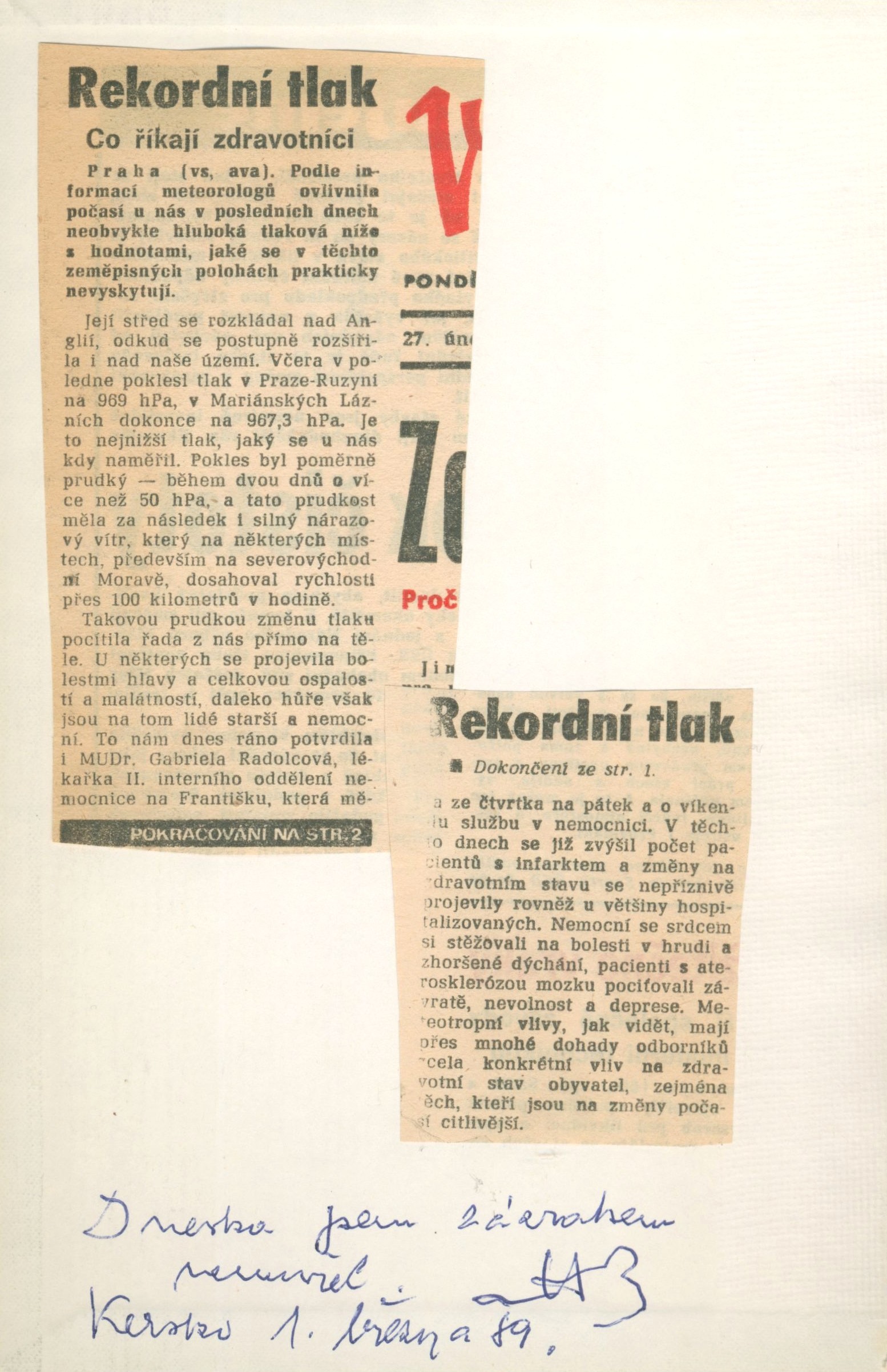 Pražská imaginace (Pražská imaginace)Country Czech Republic Language Czech Note Světlá plátěná vazba s drobnou zlatě vytlačenou ozdobou, zlatý text na hřbetu. - Na předním přídeští nalepený novinový článek "Rekordní tlak" a ručně psaný text "Dneska jsem zázrakem neumřel" s iniciálami HB a datací Kersko, 1. března 1989. - Frontispis (černobílý portrét B. Hrabala). - Přehled italských vydání Hrabalových děl (tištěno zvratmo), texty různých italských autorů. - Přehled německých vydání Hrabalových děl (tištěno zvratmo), texty různých německých autorů. - Přehled francouzských vydání Hrabalových děl (tištěno zvratmo), texty různých francouzských autorů. - Text "Kafka s úsměvem na rtech" od V.K. (Václav Kadlec), poznámky pod čarou. - Příloha (přehled novinových článků, tištěno zvratmo). - Ediční poznámka V. K. - V knize volně vložený vytržený list z novin (VP pro volné dny, 1.7. 1988).