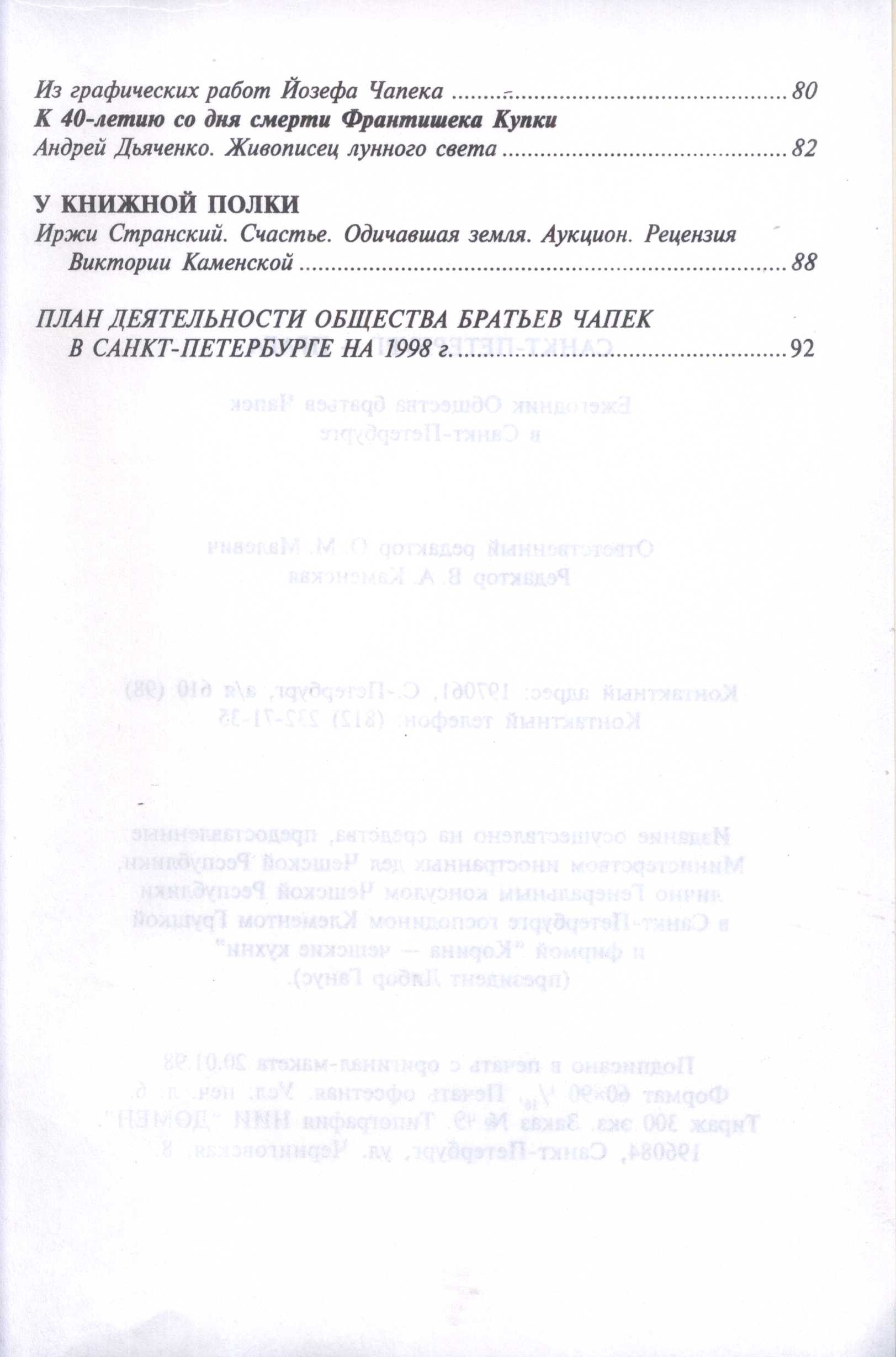 $a Sankt-Peterburg - Praga 1997 : $b ježegodnik Obščestva brat'jev Čapek v Sankt-Peterburge / $c otvetstvennyj redaktor O.M. Malevič 246 13