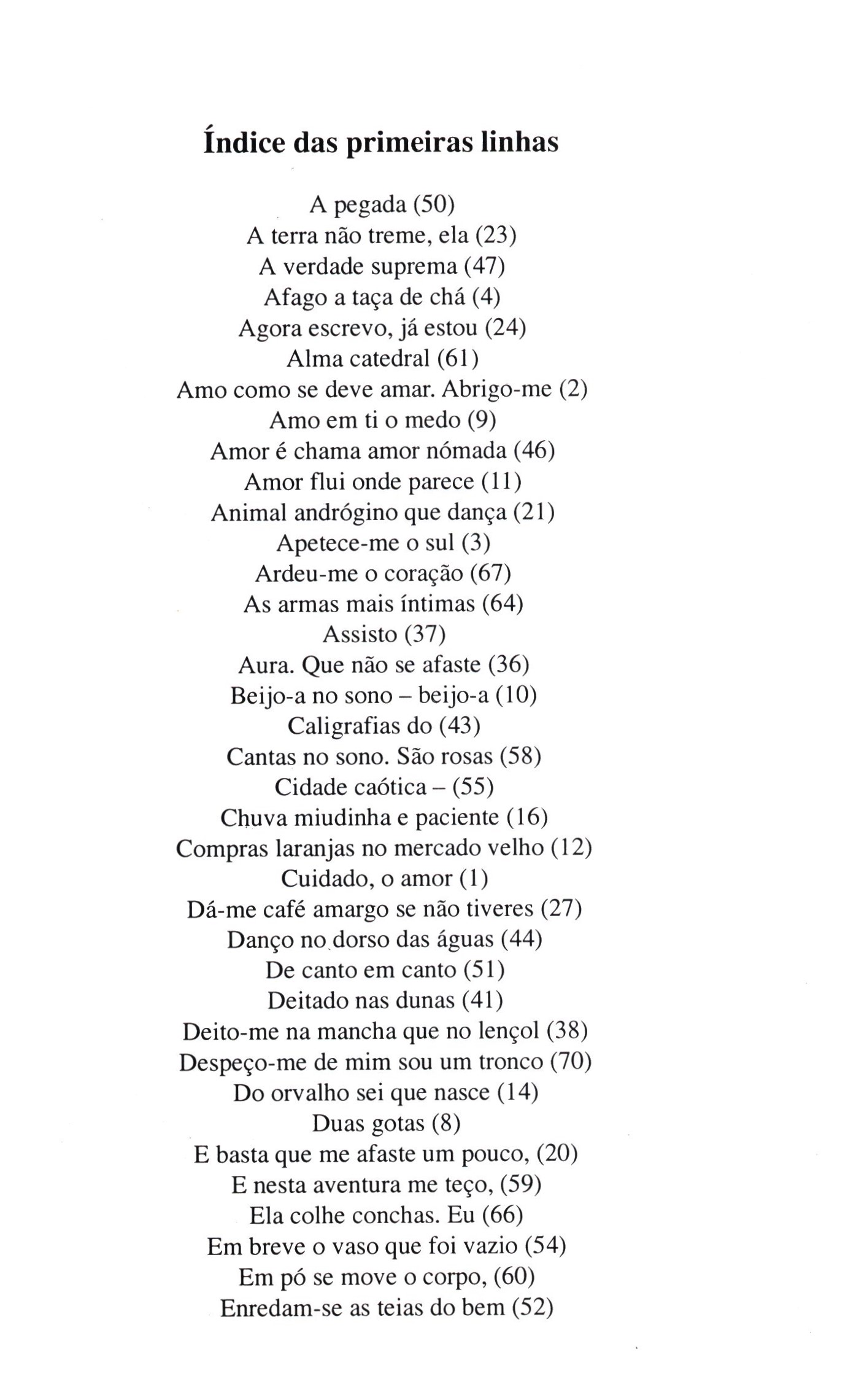 Document kind monografie Internal Bibliographies/Indexes Note Obsahuje bibliografii Keywords portugalská literatura * portugalsky psaná literatura * portugalsky píšící spisovatelé * poezie * básně UDC 821.134.3 * 821=134.3 * 82-1 Uživatelské pole PNP Sign. Listopad 673: v knize dedikace věnovaná Jorge Listopadovi s nečitelným podpisem Call number Track No. Location Info Listopad 0673 0168/2026 Sbírka