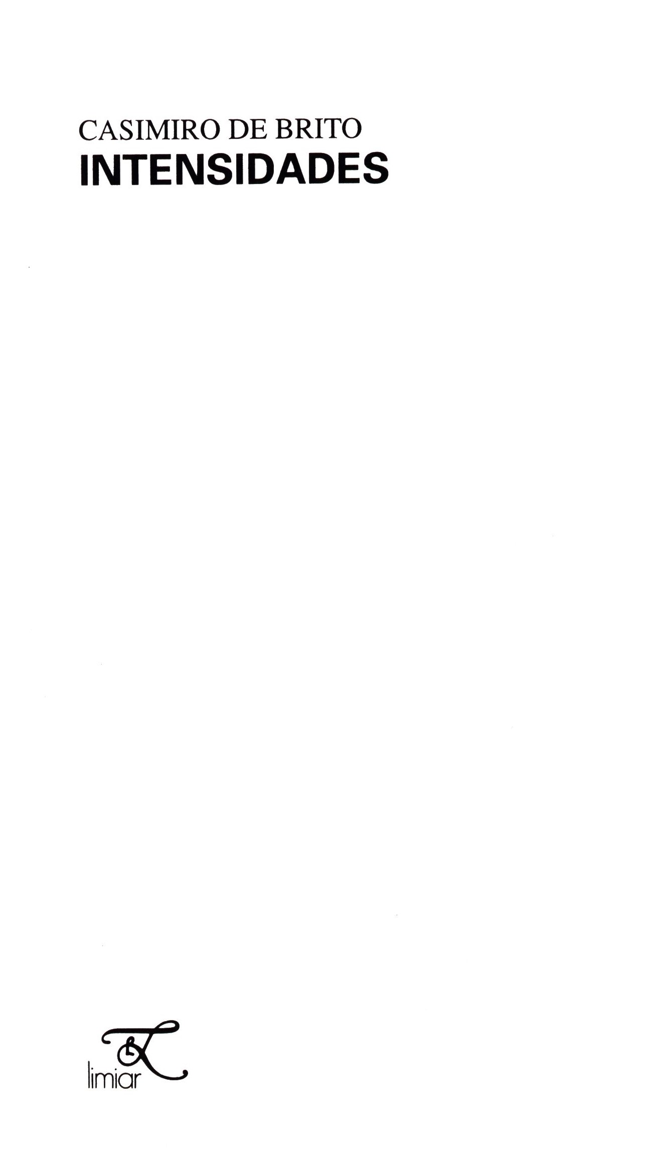 Title information Intensidades / Casimiro de Brito Personal name Brito, Casimiro de, 1938-2024 (Author) Další autoři Limiar (Publisher) Inova (firma) (Printer) Publication [Porto] : Limiar, [1995] Manufacture Inova Scope 70 stran ; 21 cm ISBN (Brožováno) Edition Os olhos e a memória (Limiar) ; 70
