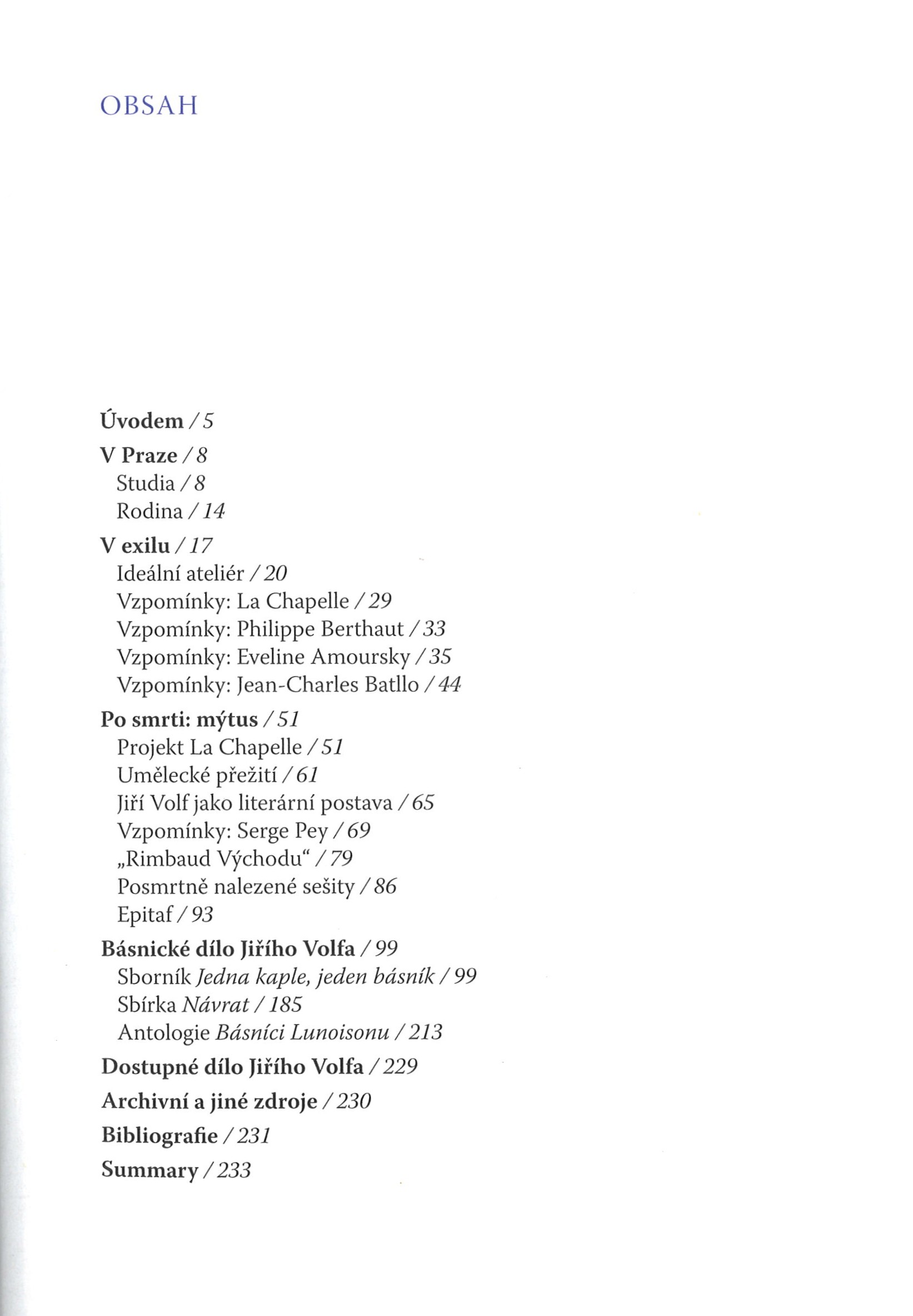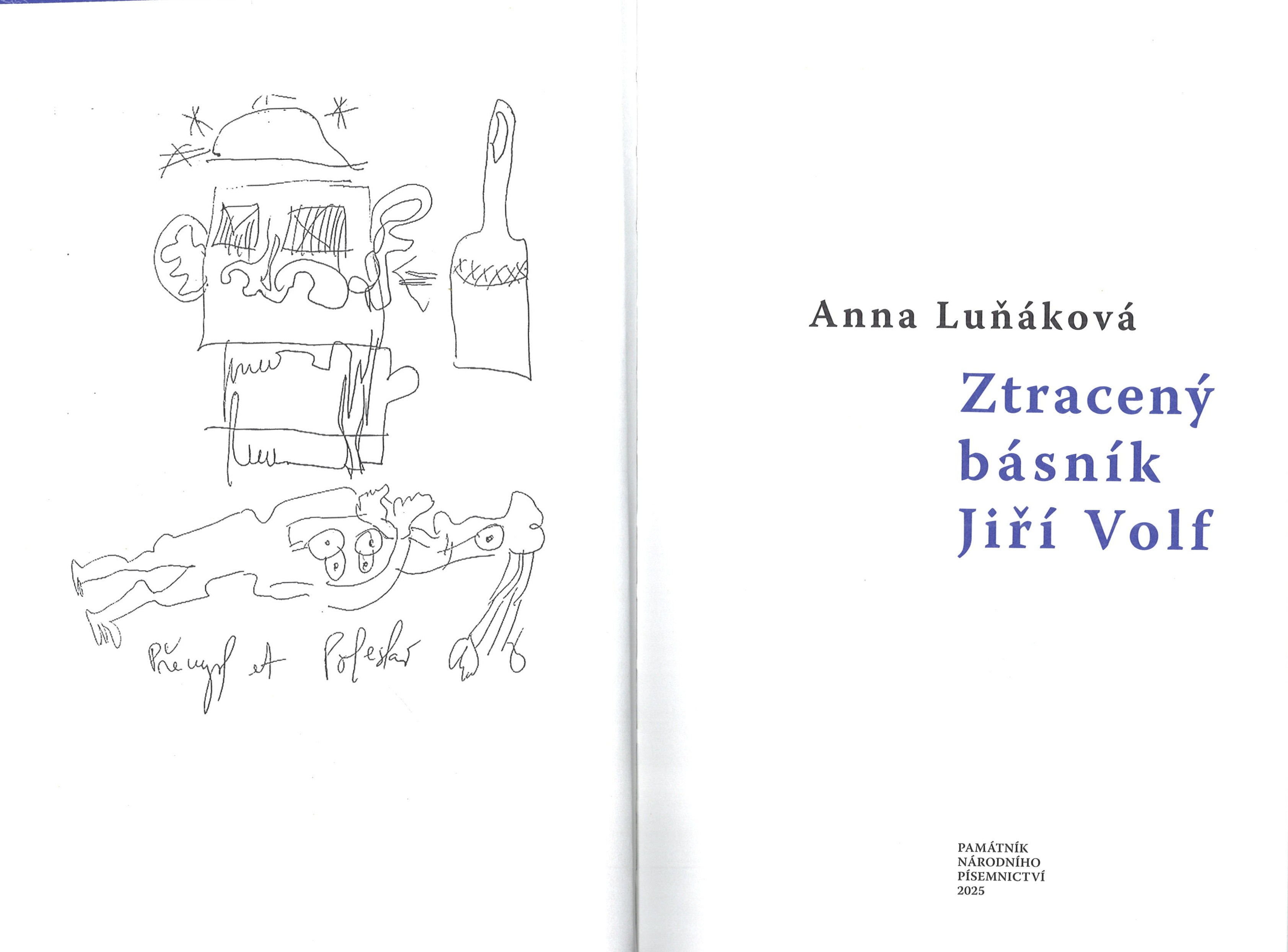 Title information Ztracený básník Jiří Volf / Anna Luňáková Personal name Luňáková, Anna, 1993- (Author) (Translator) Další autoři Páleníček, Jean-Gaspard, 1978- (Translator) (Editor) Effenberger, Jakub, 1964- (Book designer) (Compositor) Corporation Památník národního písemnictví / Muzeum literatury (Publisher) Protisk (tiskárna, České Budějovice) (Printer) Publication Praha: Památník národního písemnictví, 2025 Manufacture České Budějovice : Tiskárna PROTISK, s.r.o. Scope 233 stran : ilustrace, portréty, faksimile ; 22 cm ISBN 978-80-88503-52-1 (vázáno) Country Czech Republic Language Czech * French Language of the original French Note Zdobená kartonová vazba bez přebalu. - Frontispis. - Dvoubarevně tištěný titulní list. - Úvod. - Černobílé ilustrace, faksimile kreseb a rukopisů, fotografie. - Biografická část knihy tištěna na bílém papíře, část s překlady básní bílým písmem na černém pozadí. - Soupis díla. - Prameny. - Poznámky