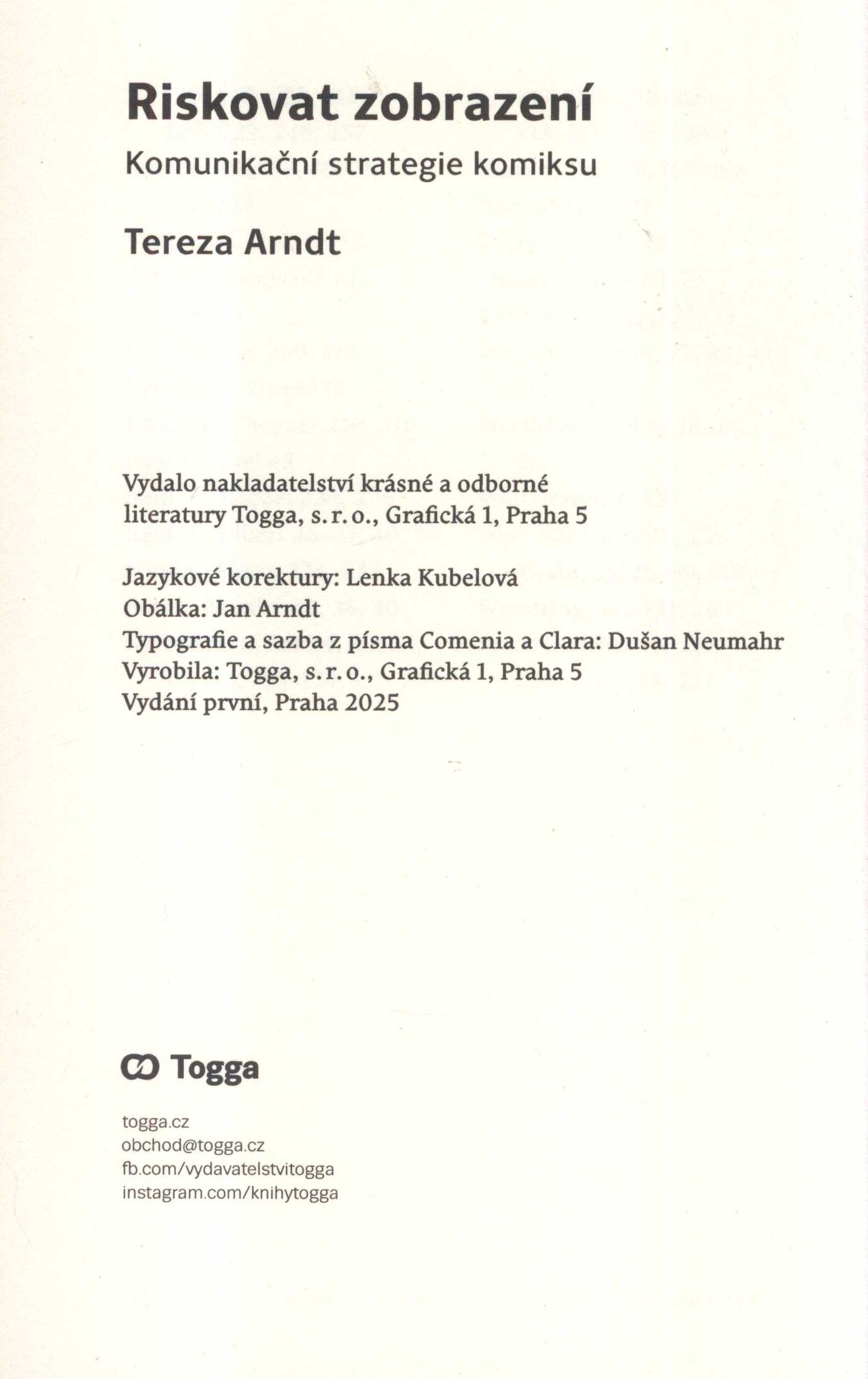 1. Title informationRiskovat zobrazení : komunikační strategie komiksu / Tereza Arndt ; obálka Jan Arndt ; typografie a sazba ... Dušan Neumahr